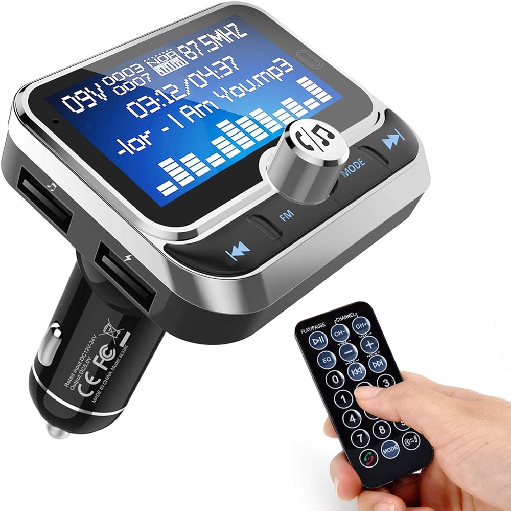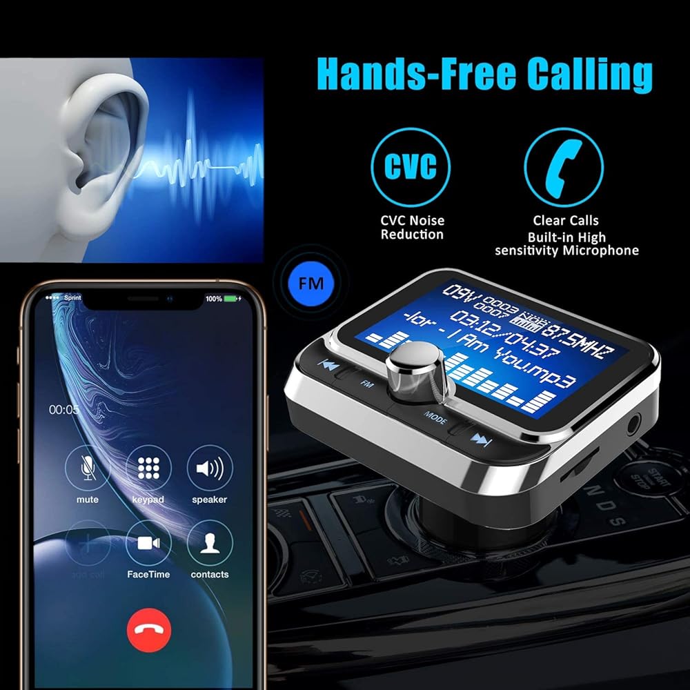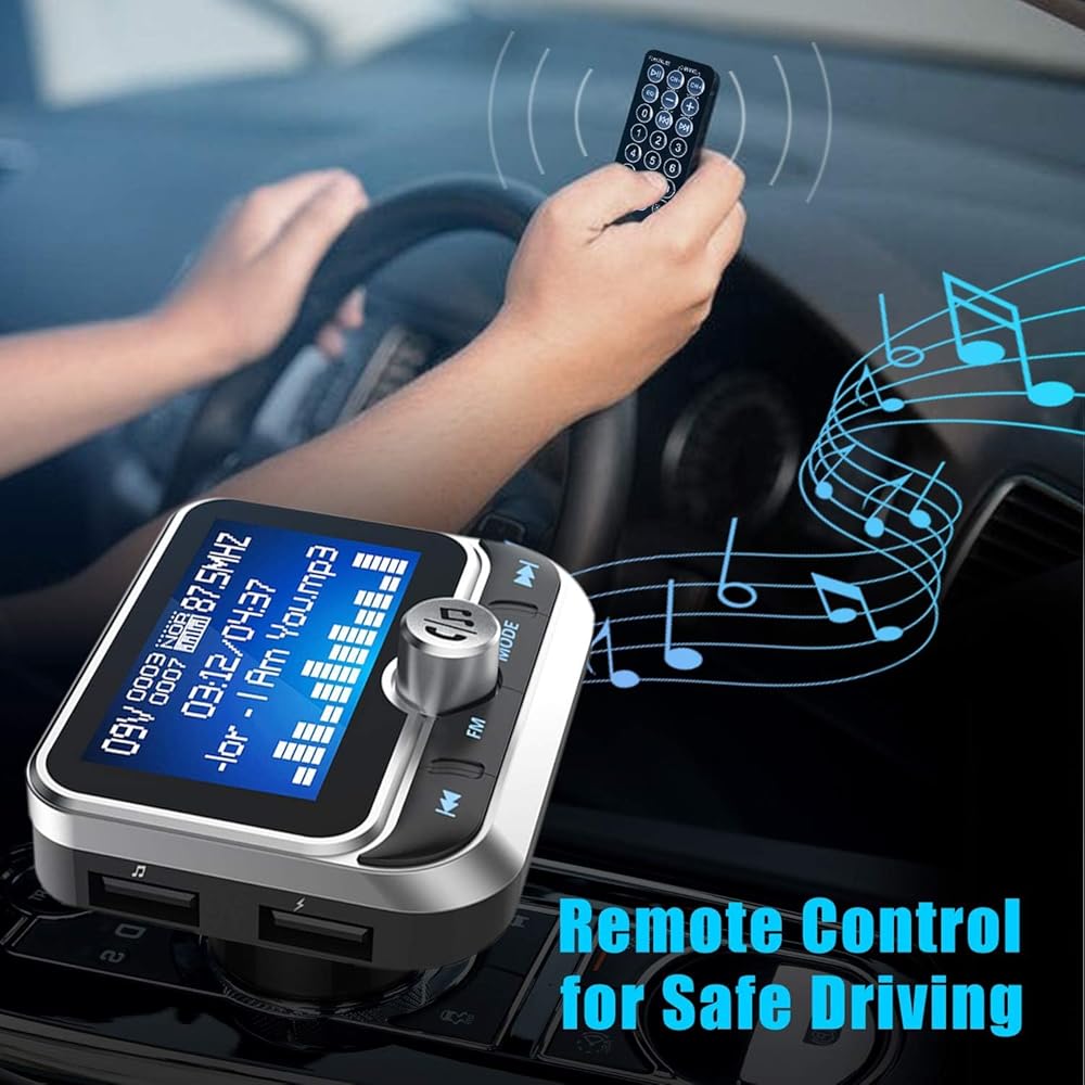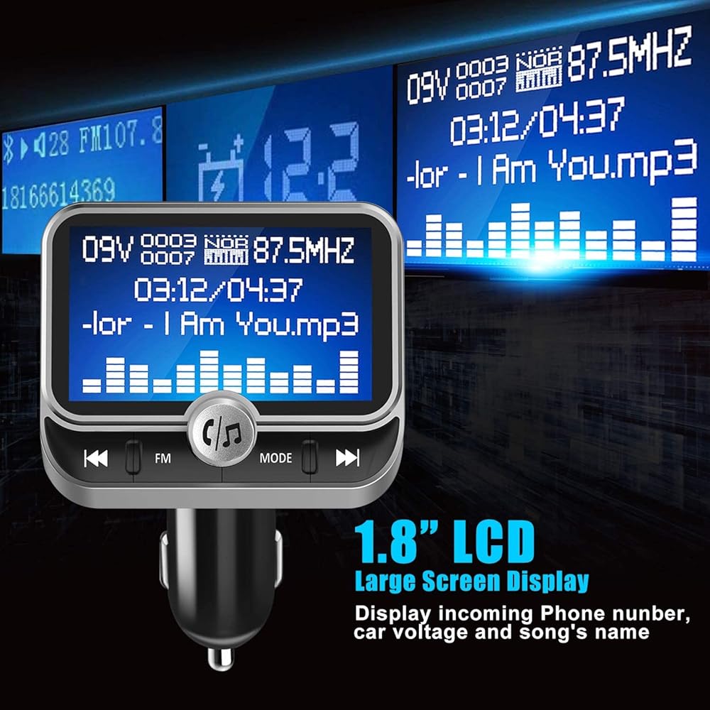 جهاز إرسال FM بلوتوث للسيارة، جهاز إرسال بلوتوث لاسلكي للسيارة طقم سيارة بدون استخدام اليدين مع شاشة 1.8 بوصة، شاحن سيارة USB مزدوج، مدخل/مخرج AUX، مشغل Mp3 لبطاقة TF، فضي (أ)