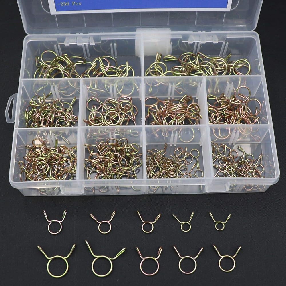 Fuel Line Hose Tubing Spring Clips Clamps Assortment Kit for Motorcycle Scooter ATV-250Pcs
