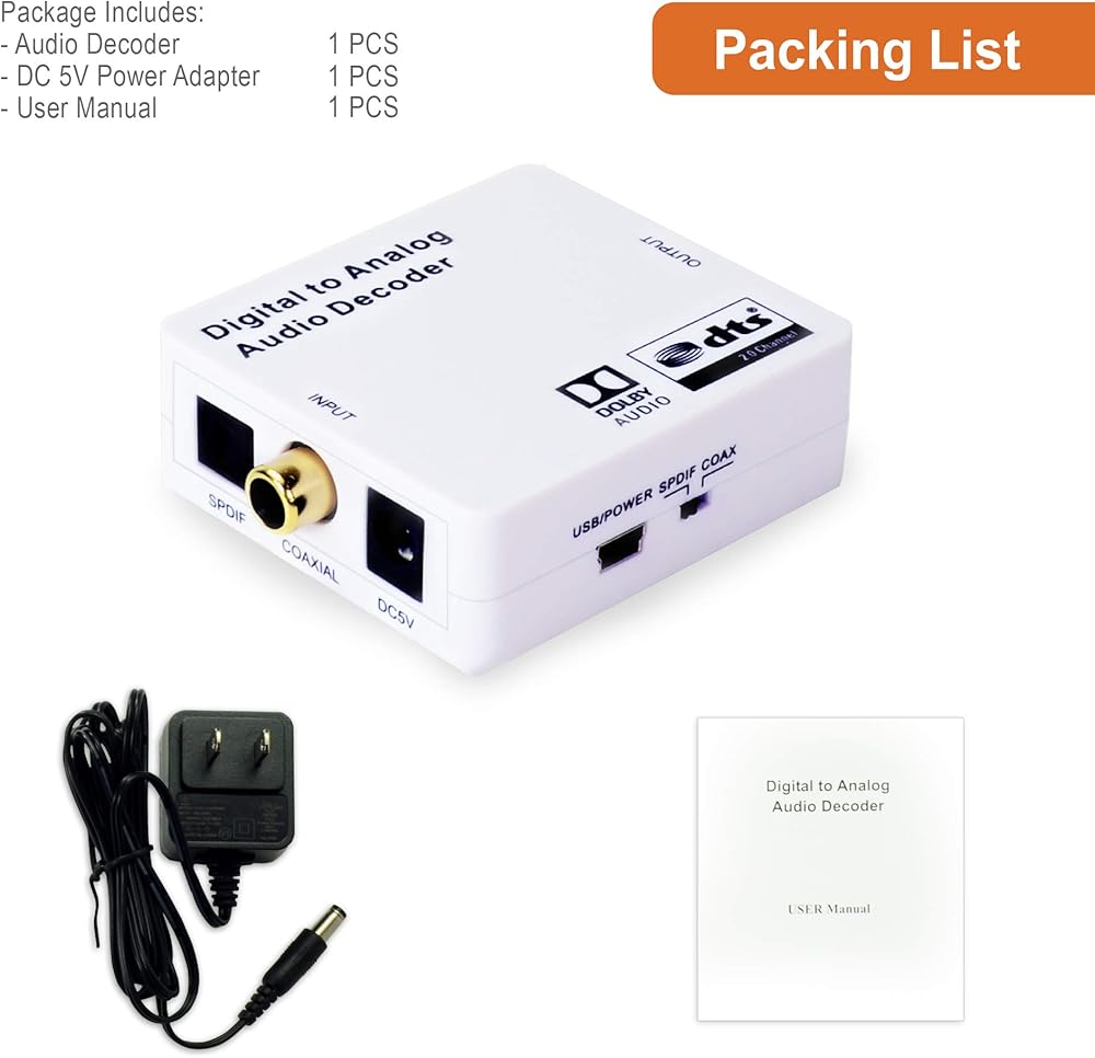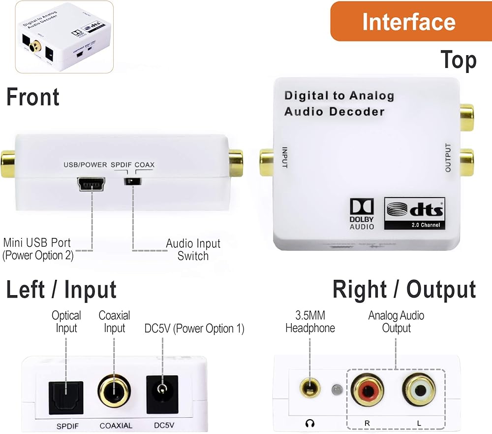 𝐏𝐥𝐮𝐠 𝐚𝐧𝐝 𝐏𝐥𝐚𝐲 – سهل الإعداد والتحكم؛ استخدم مفتاح تحديد الإدخال للاختيار بين المدخلات البصرية أو المحورية أو L/R. معدلات أخذ عينات إدخال LPCM من 32 إلى 96 كيلو هرتز، والإخراج 48 كيلو هرتز