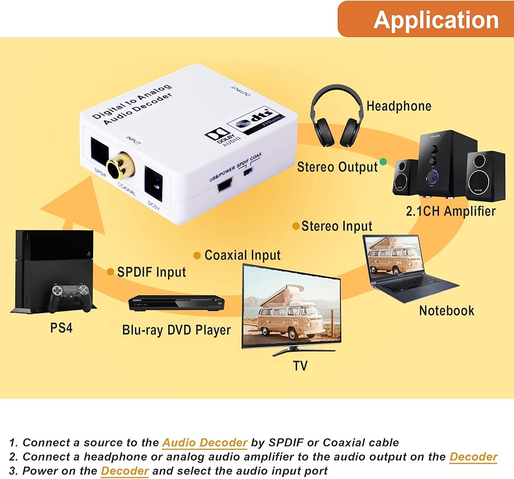 مَا 𝐮𝐝𝐢𝐨 𝐎𝐮𝐭𝐩𝐮𝐭 – يقوم في نفس الوقت بتحويل ستيريو L/R التناظري أو SPDIF TosLink الرقمي البصري أو إدخال الصوت الرقمي المحوري إلى ثلاثة مخرجات صوتية مع إرسال إلكتروني خالٍ من الضوضاء.
