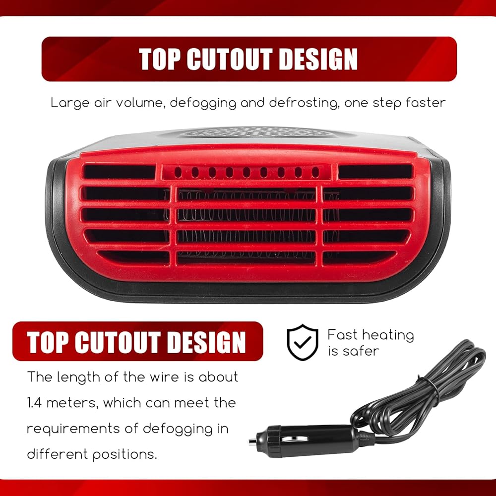 🔥【Fast Heating 】The powerful car heater can quickly heat the air, warm your winter. Suitable for all 12V 150W vehicles. Effectively keep the sight of the windshield clear and prevent fog or frost from blurring the line of sight