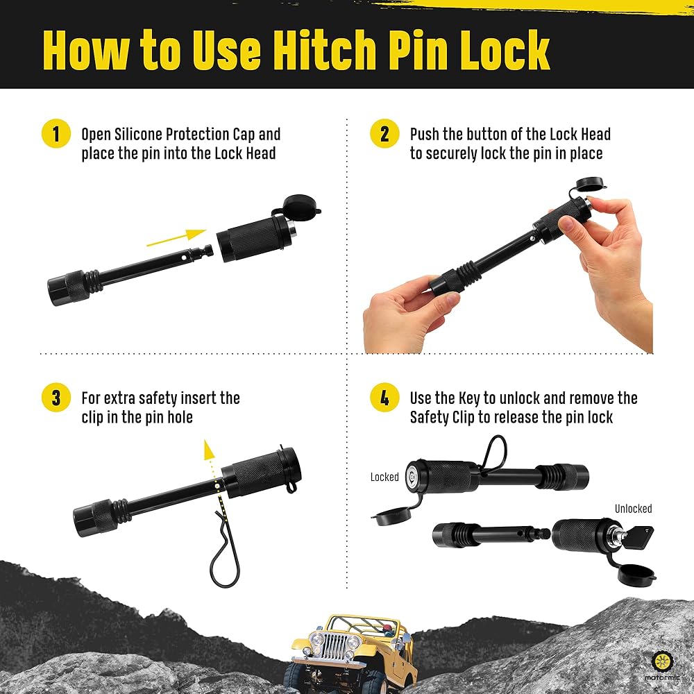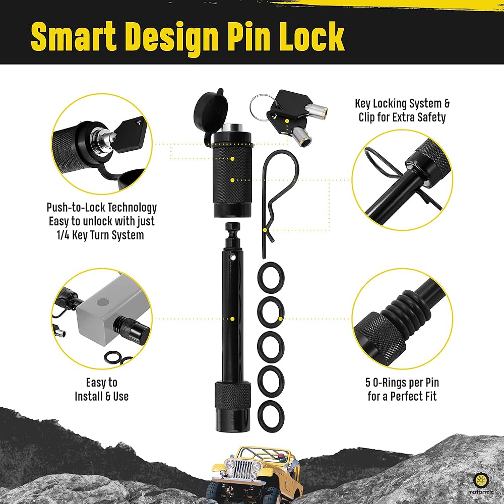 مجموعة دبابيس ربط قابلة للقفل سهلة الاستخدام - دبوس وصلة ربط لأجهزة الاستقبال مقاس 2 بوصة وأكثر سهولة في التثبيت باستخدام تقنية الدفع للقفل. من السهل أيضًا فتح دبوس قفل وصلة الجر باستخدام نظام تشغيل مفتاح 1/4 فقط.