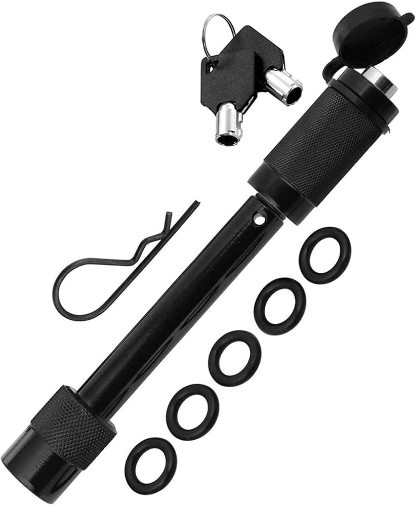 قفل عقبة المقطورة - 5/8 "دبوس أسود طويل إضافي مع نظام قفل واحد - 1 مقطع أمان ، 5 حلقات مضادة للحشرجة - أجهزة الاستقبال 2" و 2.5 بوصة (الفئة الثالثة ، الرابع ، الخامس)