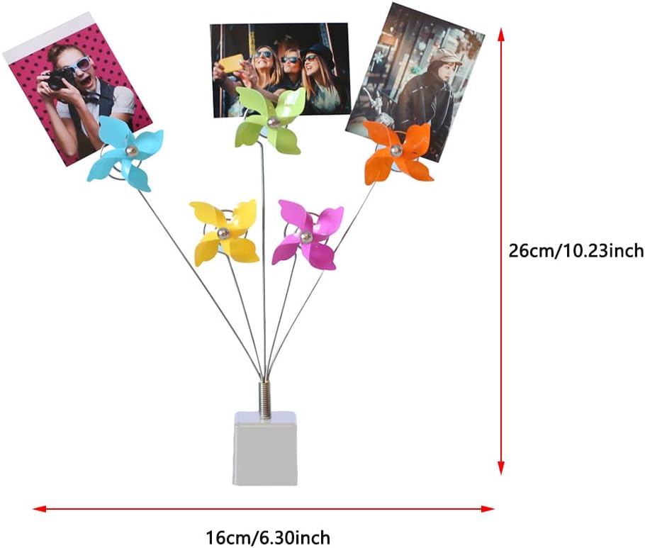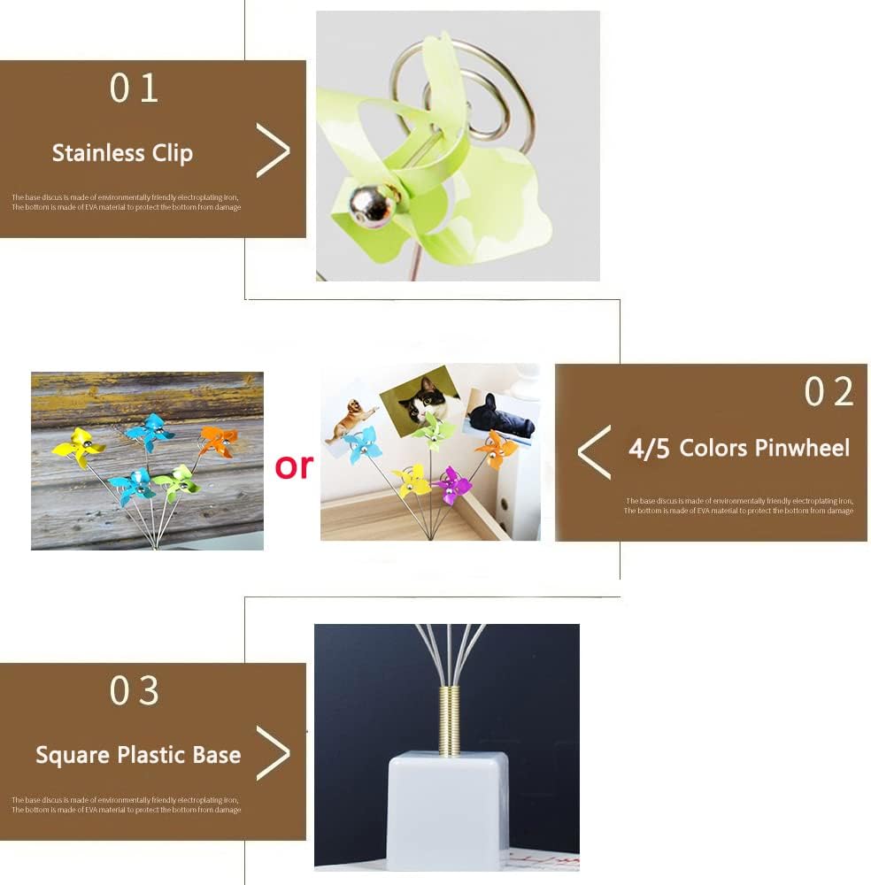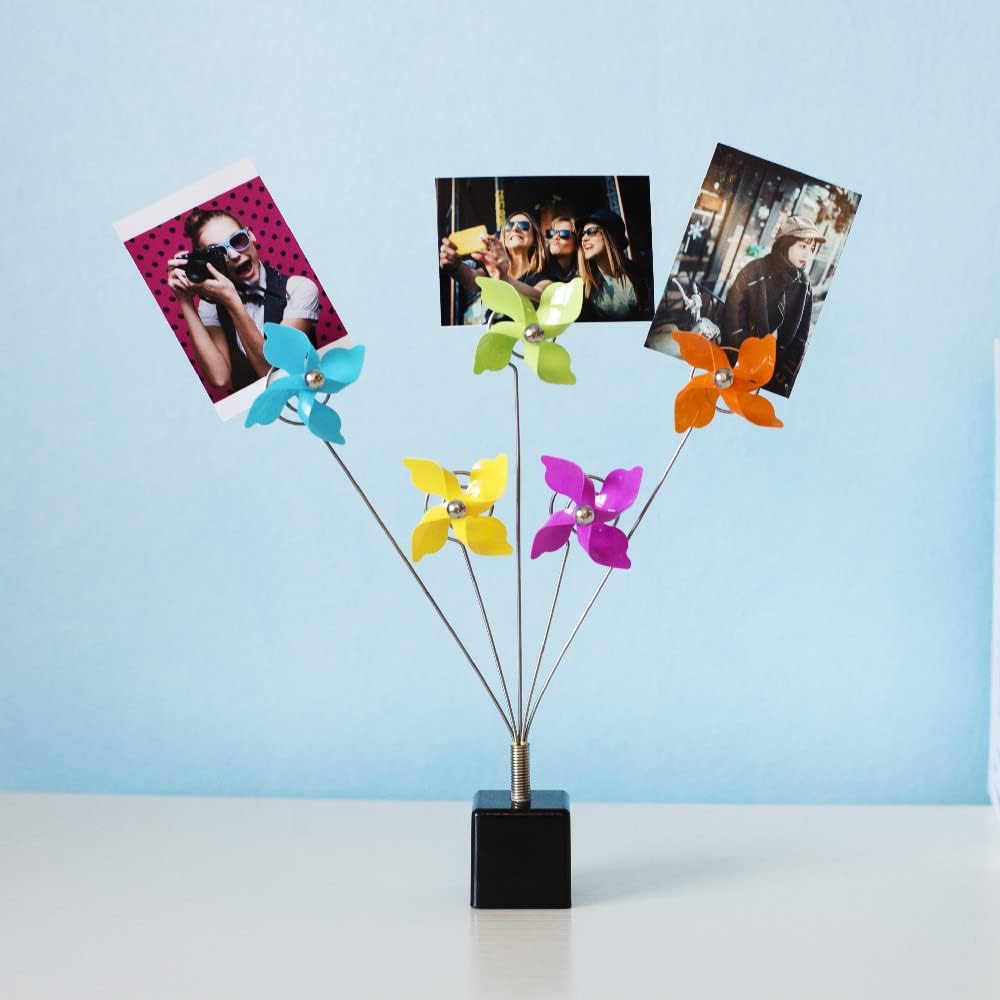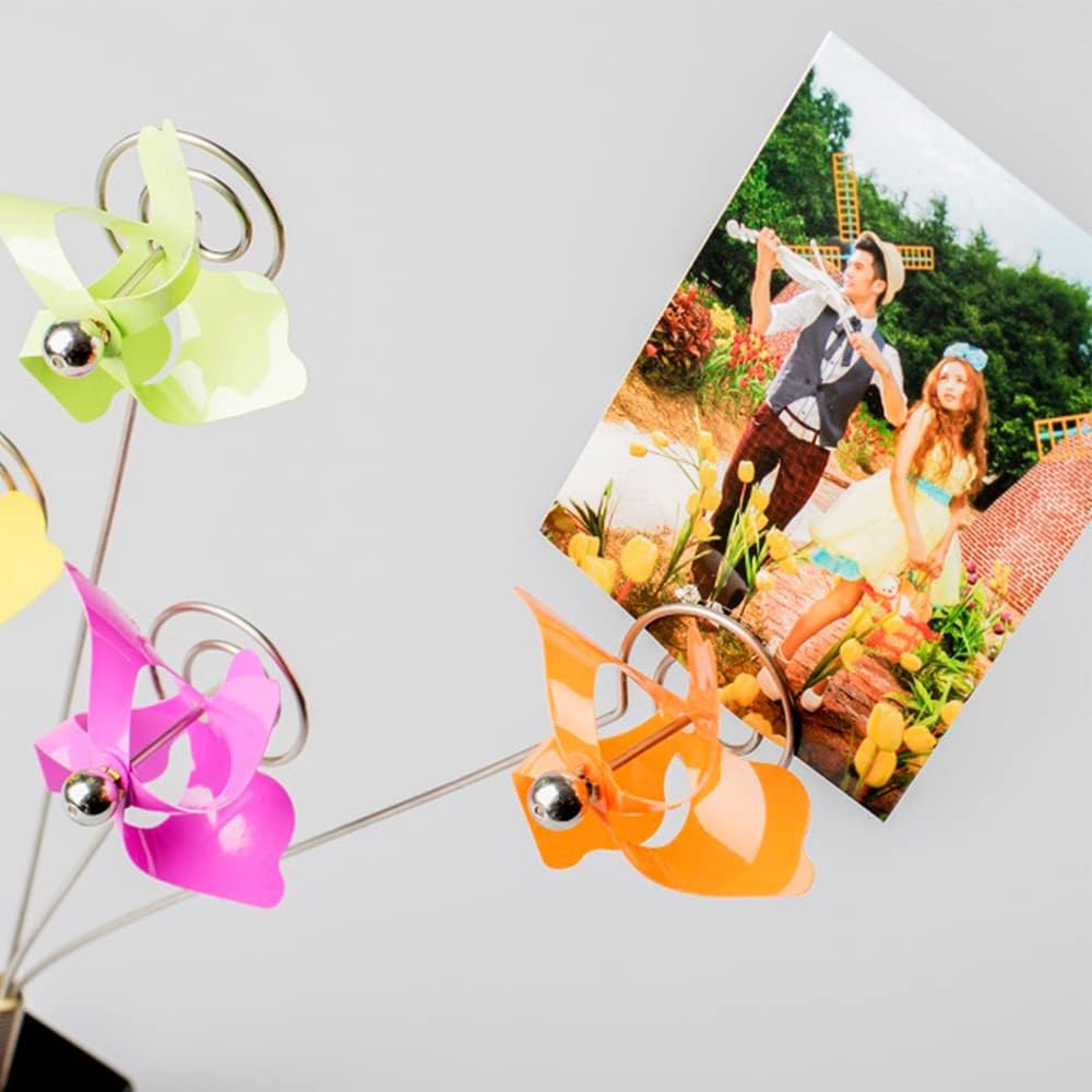UNIQUE DESIGN: This playful tabletop picture stand and photo holder is designed with 5 or 4 different colors pinwheel(NOTE: the pinwheels have 4 or 5 different colors by different production batch, so 2 kinds of products are shipped in random. Please make sure you don't mind it before placing the order. ), allowing pictures/photos/cards to be displayed in an attractive way.