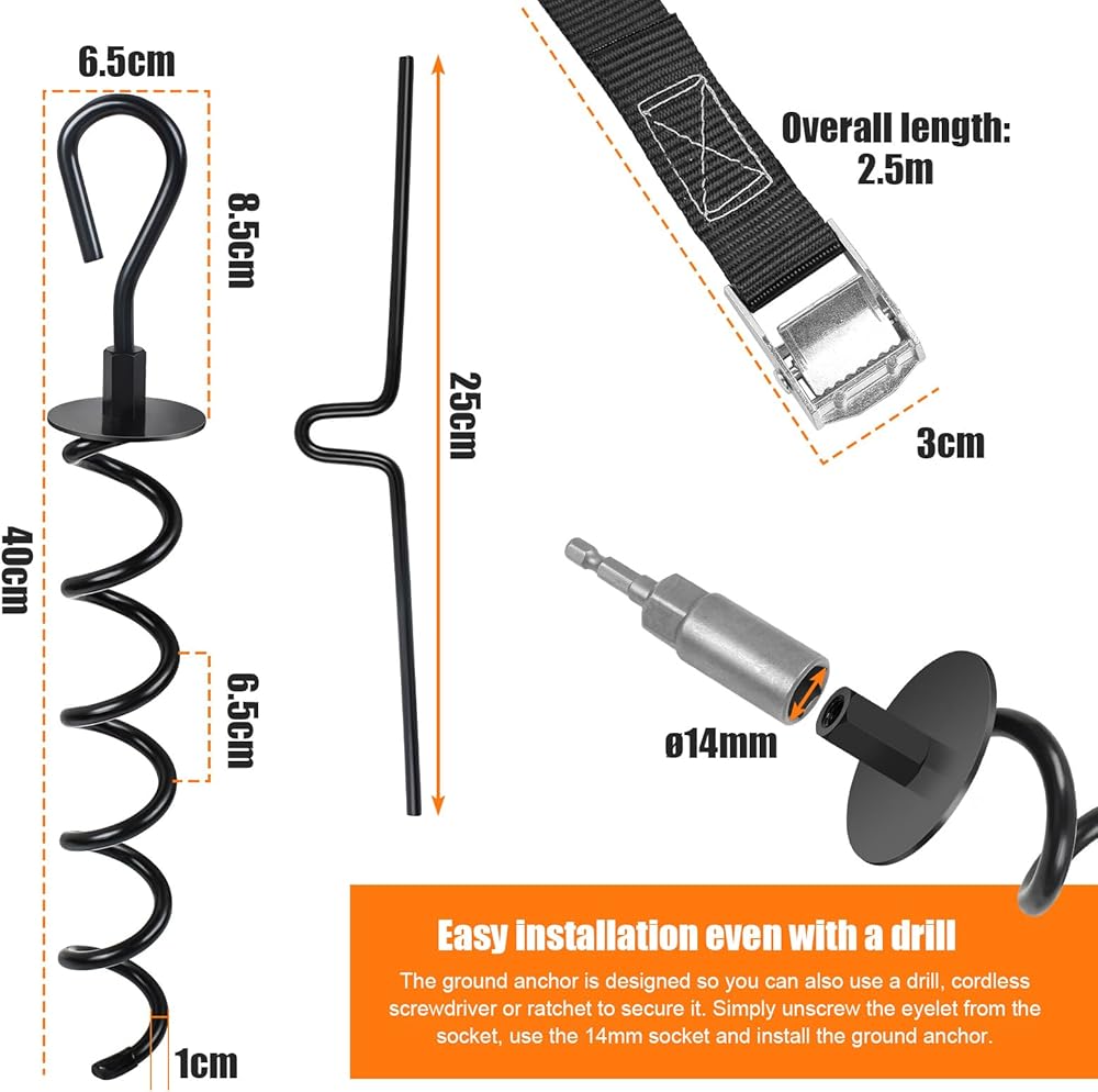 ✅【سوف تستلم】تتضمن العبوة 4 × مرساة أرضية معدنية حلزونية، 4 × أحزمة أمان ثابتة، 1 × عتلة مساعدة و1 × رأس محول مثقاب كهربائي. مجموعة المرساة الأرضية DTNESS المكونة من 10 قطع هي مجموعة عملية لتثبيت الأشياء المختلفة في الأرض بقوة. المجموعة متعددة الاستخدامات ويمكن استخدامها مرارًا وتكرارًا!