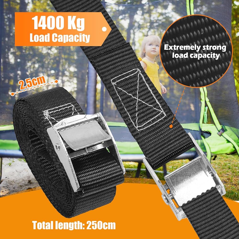✅[أشرطة متينة] 4 أحزمة كتف متينة مصنوعة من البوليستر، مرنة للغاية ومقاومة للتمزق. العرض 2.5 سم والطول 250 سم ويتحمل وزن 1400 كجم. يمكنك تثبيت الإبزيم المعدني بعد ضبط الطول وفقًا لاحتياجاتك، مما يربط نظامك الخارجي بقوة بالمرساة الأرضية وبالتالي يضمن المزيد من الثبات.