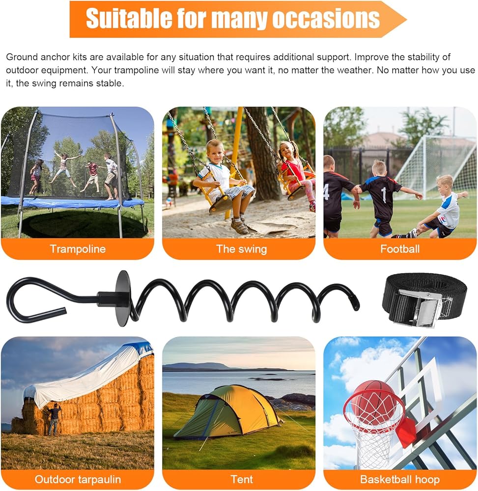 ✅【استخدام واسع】هذه المجموعة مثالية للحدائق ومواقع التخييم والمتنزهات وغيرها من الأماكن الخارجية. لا يوفر الحماية للترامبولين الخاص بك فحسب، بل يمكن استخدامه أيضًا كحامل أرضي للخيم أو أغطية حمامات السباحة أو الأراجيح أو الشرائح أو أطواق كرة السلة أو سقائف الحديقة أو غيرها من المعدات الخارجية. يمكن استخدامه أيضًا لربط الكلاب الكبيرة في الهواء الطلق.