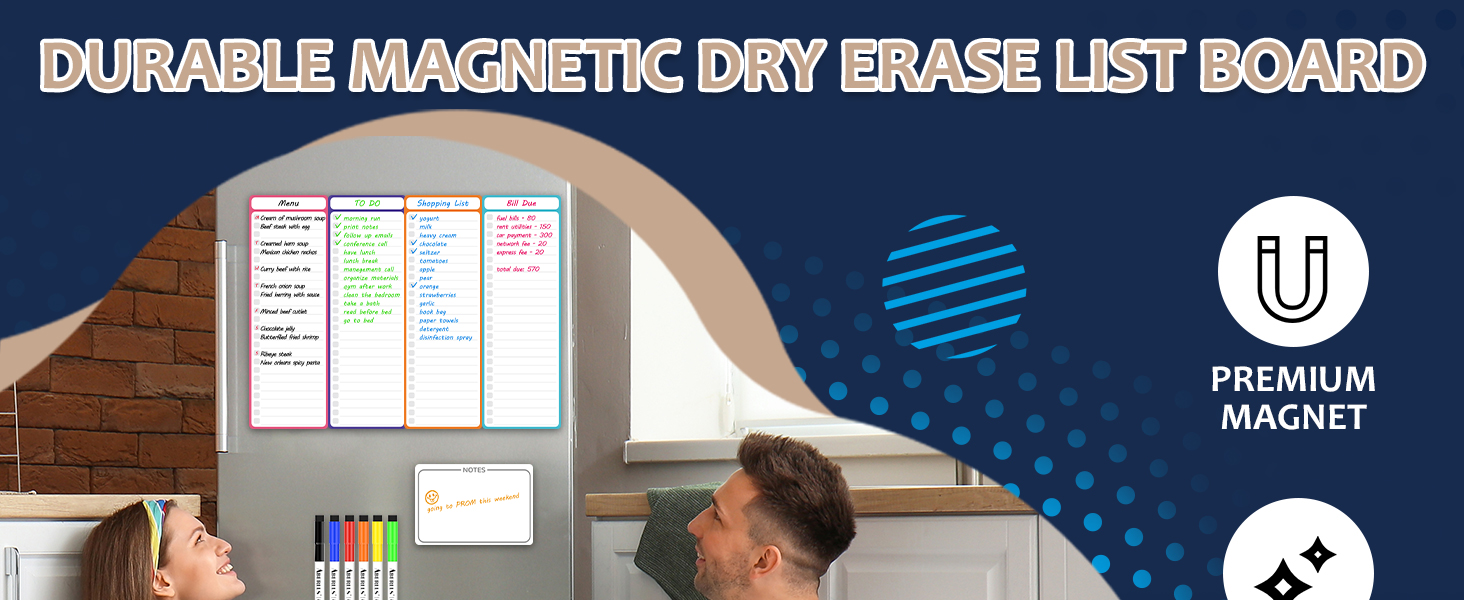 حافظ على عدم نسيان الأمور المهمة: على الرغم من أن لدينا العديد من التطبيقات للقوائم، إلا أننا لا نزال بحاجة إلى لوحة المسح الجاف المغناطيسية الصغيرة هذه. قد نتجاهل بسهولة المهام الموجودة على الهاتف، لأننا نتعرض للإرهاق من جميع الإشعارات. السبورة البيضاء الأربعة ذات الخطوط تصنف حياتك بسهولة، ومناسبة لوضعها في وضع ملفت للنظر، مثل المطبخ، وغرفة الجلوس، وغرفة النوم، والمكتب. تعد قائمة مهام المسح الجاف الخاصة بنا هي الخيار الأفضل لتحسين كفاءة عملك وتقليل عبء الذاكرة.
