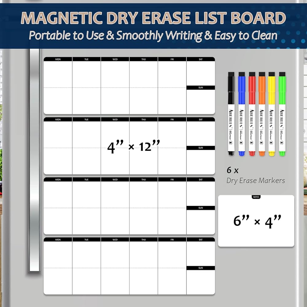 لوحات قائمة المهام ذات القيمة الفائقة: 4 لوحات تخطيط بألوان حدود مختلفة، 4 × 12 بوصة، كبيرة بما يكفي لرؤيتها من مسافة بعيدة، ولكنها صغيرة بما يكفي بحيث لا تشغل مساحة كبيرة. تعد اللوحة البيضاء المكونة من 24 صفًا رائعة لاستيعاب المخططات والملاحظات الروتينية الخاصة بك. تأتي لوحة المسح الجافة الصغيرة مع 6 أقلام مغناطيسية قابلة للمسح، مما يجعلك تكتب علامات ونصوص مختلفة بوضوح. يمكنك تعليقها على ألواح المسح الجافة، دون القلق بشأن فقدانها.