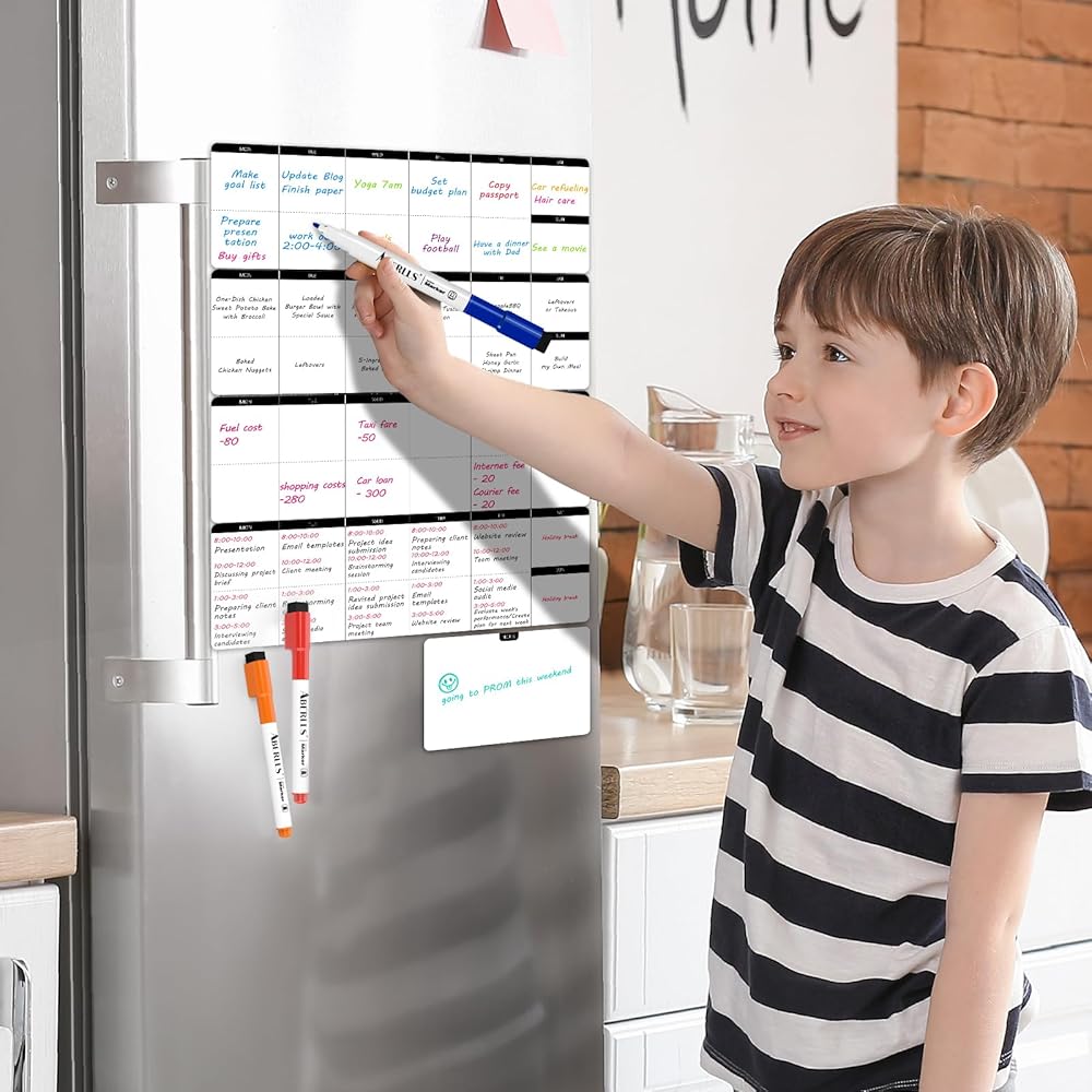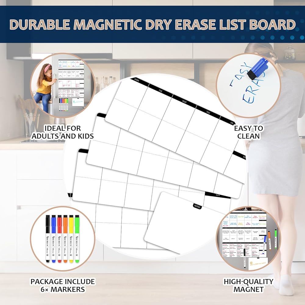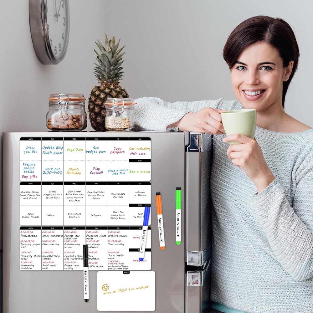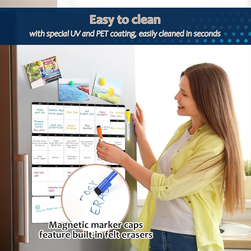 لوحة بيضاء سهلة التنظيف وقابلة لإعادة الاستخدام: لوحة الملاحظات الجافة الخاصة بنا مغطاة بطبقة ممحاة نانو ممتازة. على الرغم من أنه بعد فترة طويلة، يمكن مسح كتاباتك على السبورة البيضاء المغناطيسية بسهولة دون ترك أي بقع. تُعد مفكرة الثلاجة القابلة لإعادة الاستخدام بديلاً رائعًا للمفكرة الورقية التقليدية، حيث ترافقك عامًا بعد عام. طبقة النانو للسبورة البيضاء المغناطيسية مقاومة للماء، لذلك يمكنك أيضًا استخدام قطعة قماش مبللة لتنظيفها.