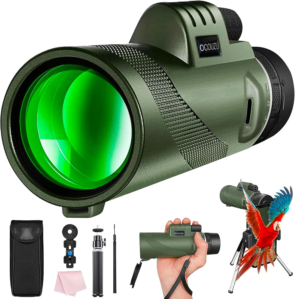 جديد 2024 80x100 تلسكوب أحادي العين عالي الطاقة للبالغين رؤية ليلية منخفضة HD أحادي العين مع محول الهاتف الذكي وحامل ثلاثي القوائم لمشاهدة الطيور طويلة المدى / الصيد / سيارات السباق / المشي لمسافات طويلة