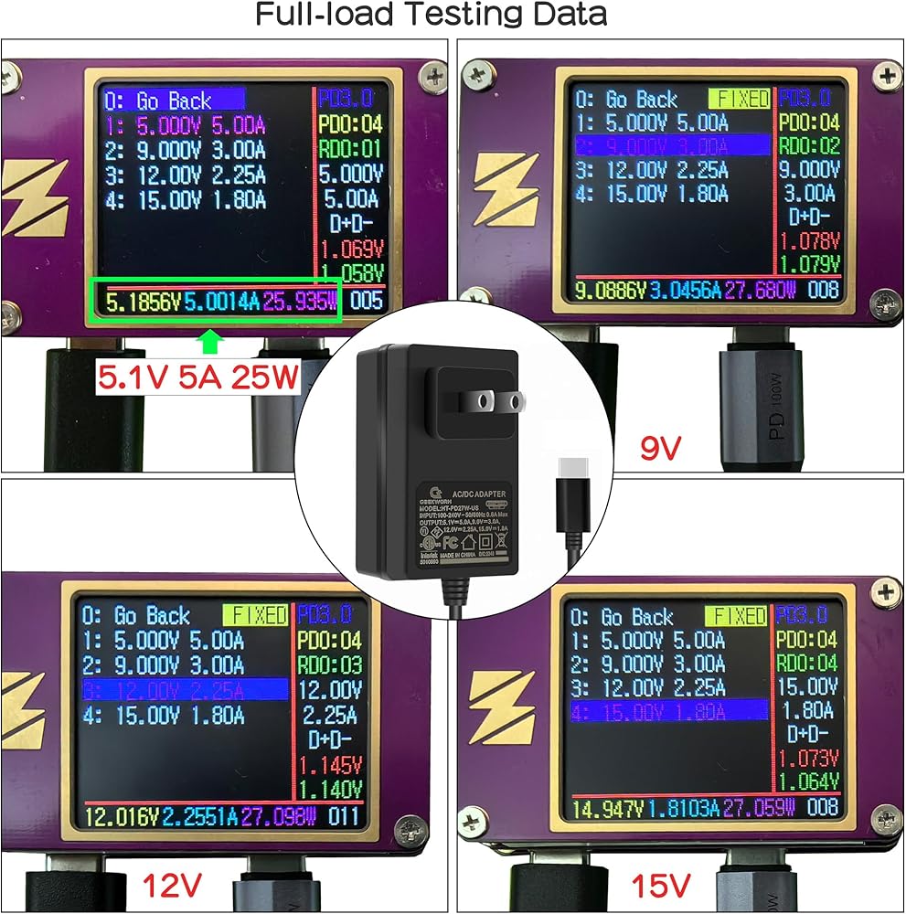 - 【الإخراج: 5.1 فولت/5 أمبير، 9 فولت/3 أمبير، 12 فولت/2.25 أمبير، 15 فولت/1.8 أمبير