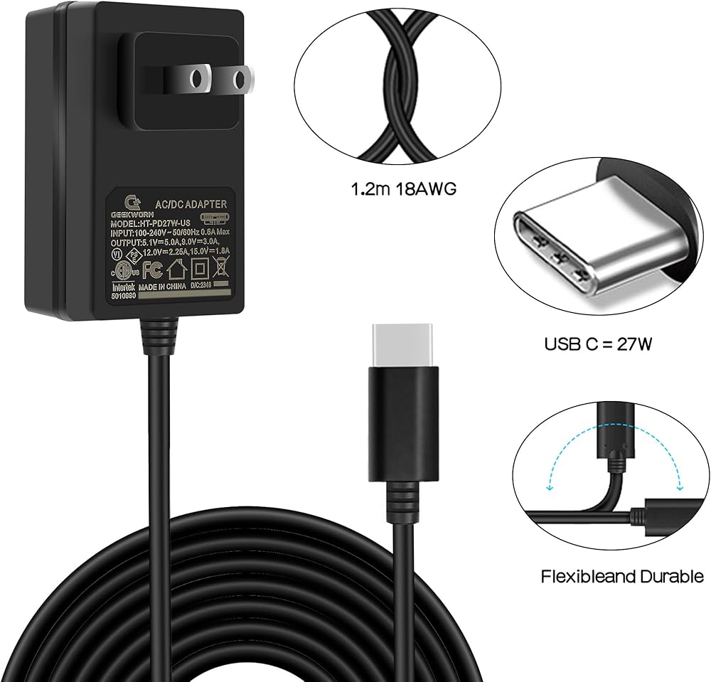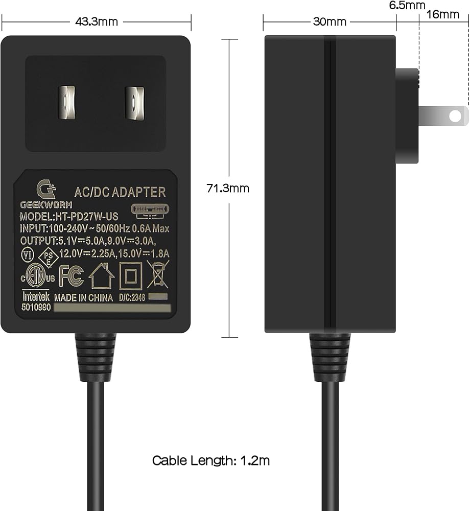 Geekworm PD 27W 5.1V 5A USB-C مزود الطاقة لـ Raspberry Pi 5 (مدرج في قائمة ETL)