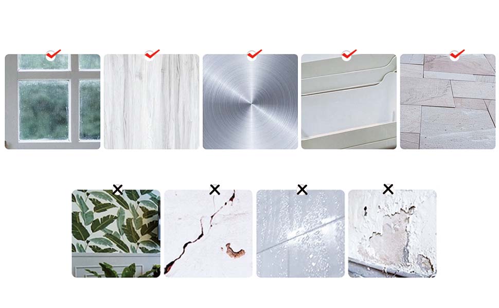 • مناسب لـ: الورق، جدار الطلاء، الخشب، البلاط، المعدن، البلاستيك، الزجاج وغيرها من الأسطح النظيفة والجافة. لا يُنصح باستخدامه مع ورق الحائط السائب أو التقشير أو الطلاء المصقول حديثًا