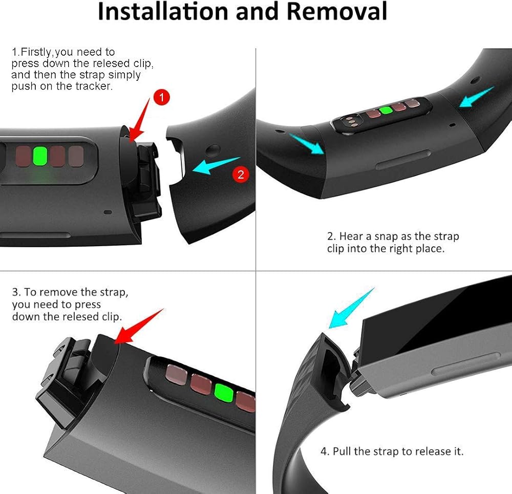 [تركيب بسيط] الإبزيم مصنوع من الفولاذ المقاوم للصدأ، سهل التجميع وتغيير الحجم. بالإضافة إلى ذلك، توجد فتحة أسفل الحلقة، يمكنها تثبيت السوار الخاص بك بشكل آمن في مكانه وتأمين الطول الإضافي لسوار Fitbit Charge 3/Charge 4 Bands، وتجنب سقوط الساعة من الحزام عندما تكون فضفاضة.