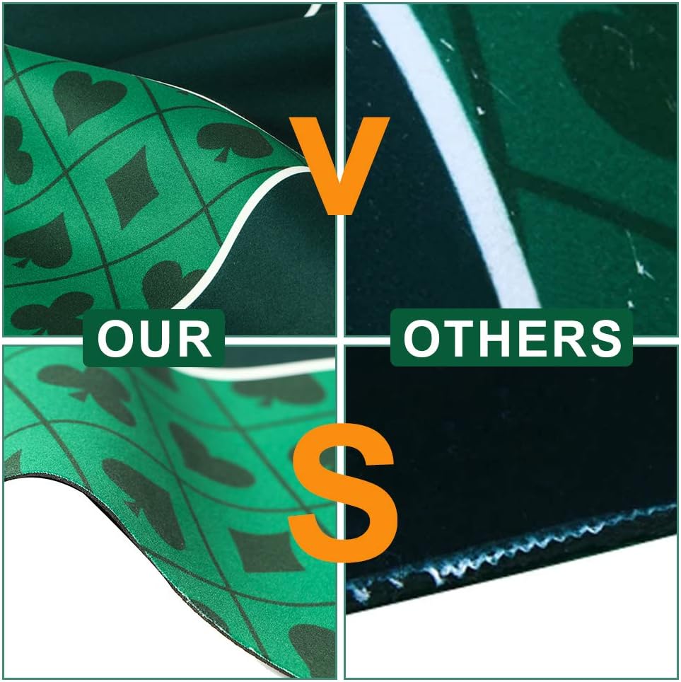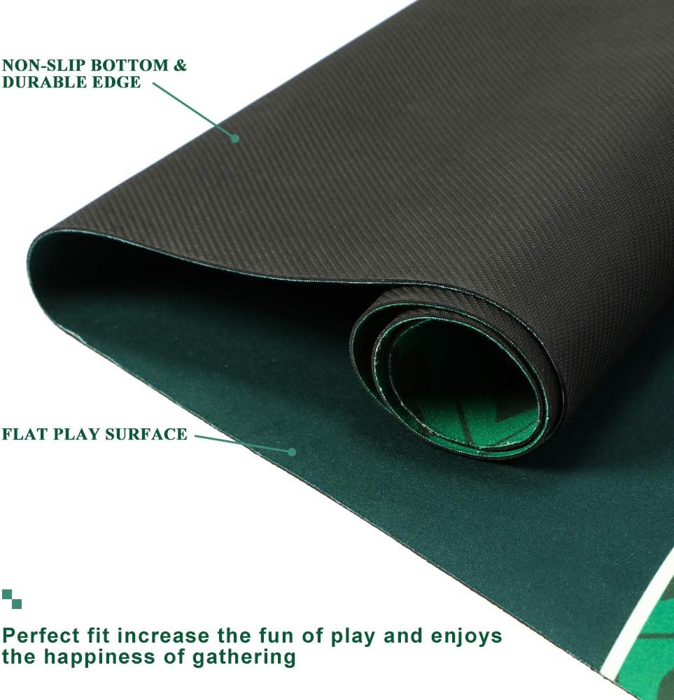 ♠【سطح فائق النعومة】سطح طاولة من الإسفنج المطاطي بتصميمات متقنة. تنزلق البطاقات بسهولة. مما يوفر سطحًا أملسًا وغير مقاوم لألعاب الورق. كما أنه يحمي الطاولة من الخدوش والبقع.