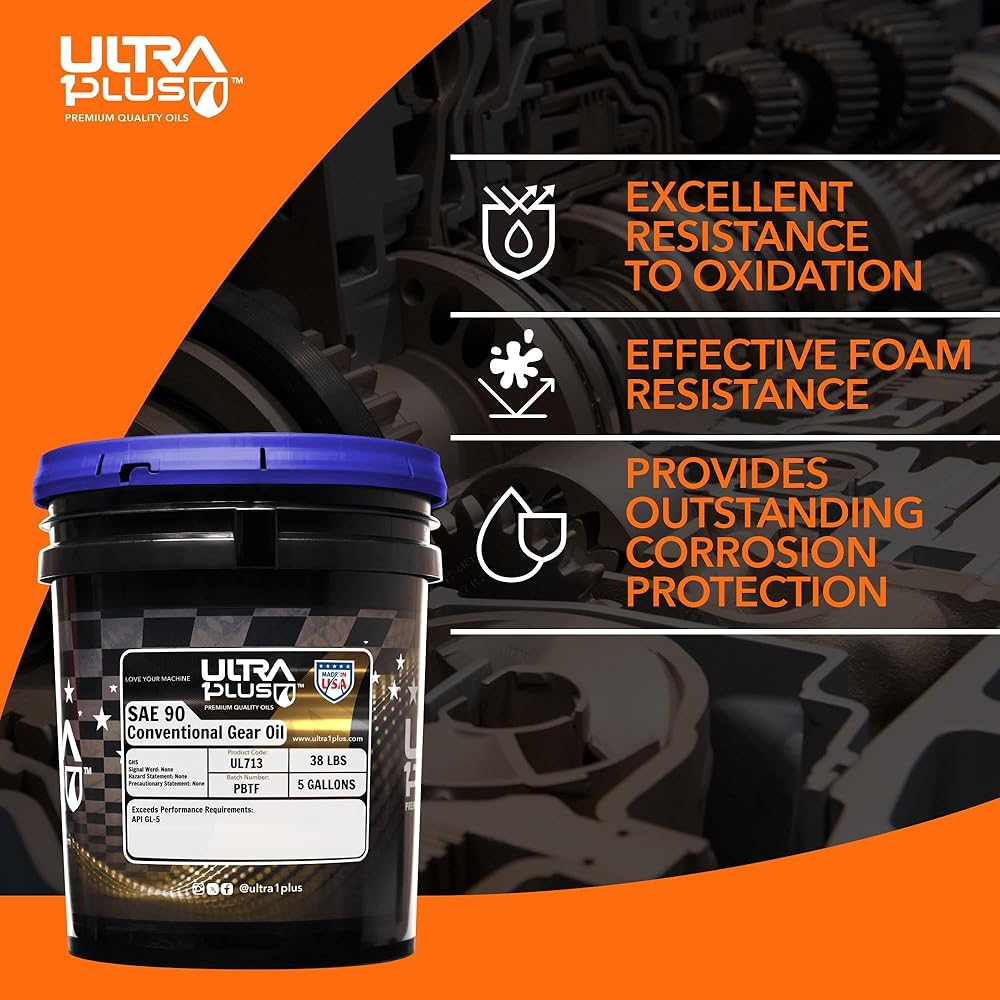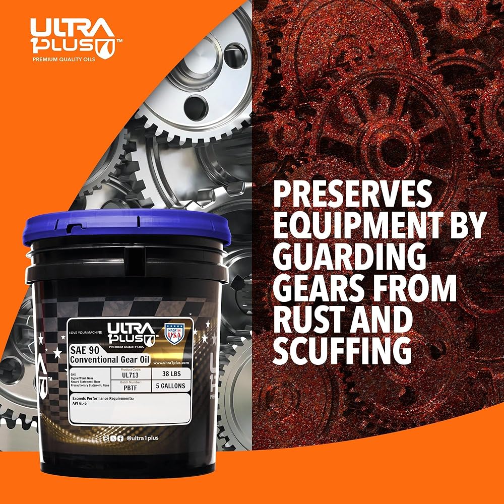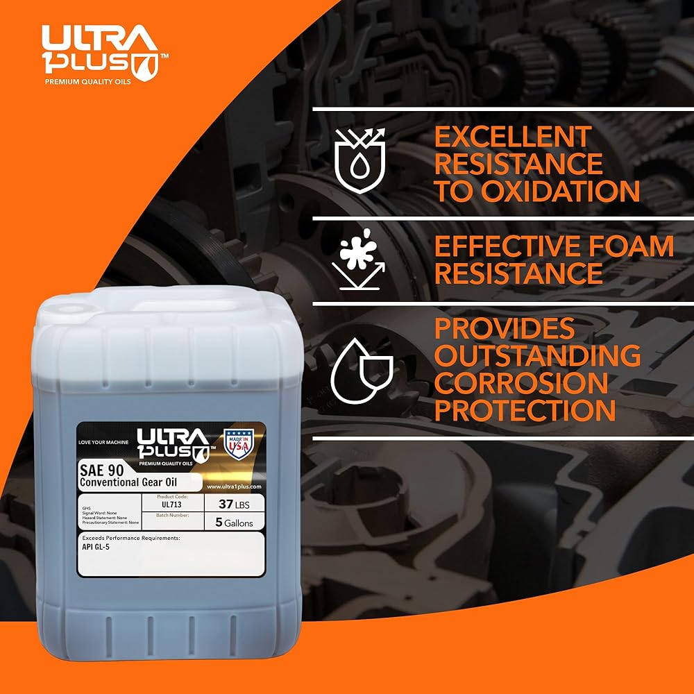 Ultra1Plus SAE 90 Conventional Gear Oil, API GL-5 is formulated with paraffinic base oil and specialty performance additives. API Category GL-5 designates the types of service characteristic of gears, particularly hypoids in automotive axles under high-speed and/or low-speed, high-torque conditions. Specialty anti-scuffing additives and friction modifiers provide advanced protection and lubricity in extreme pressure conditions. Additionally SAE 90 API GL-5 Gear Oils is highly shear stable while also resisting rust, oxidation, foaming, and varnish.