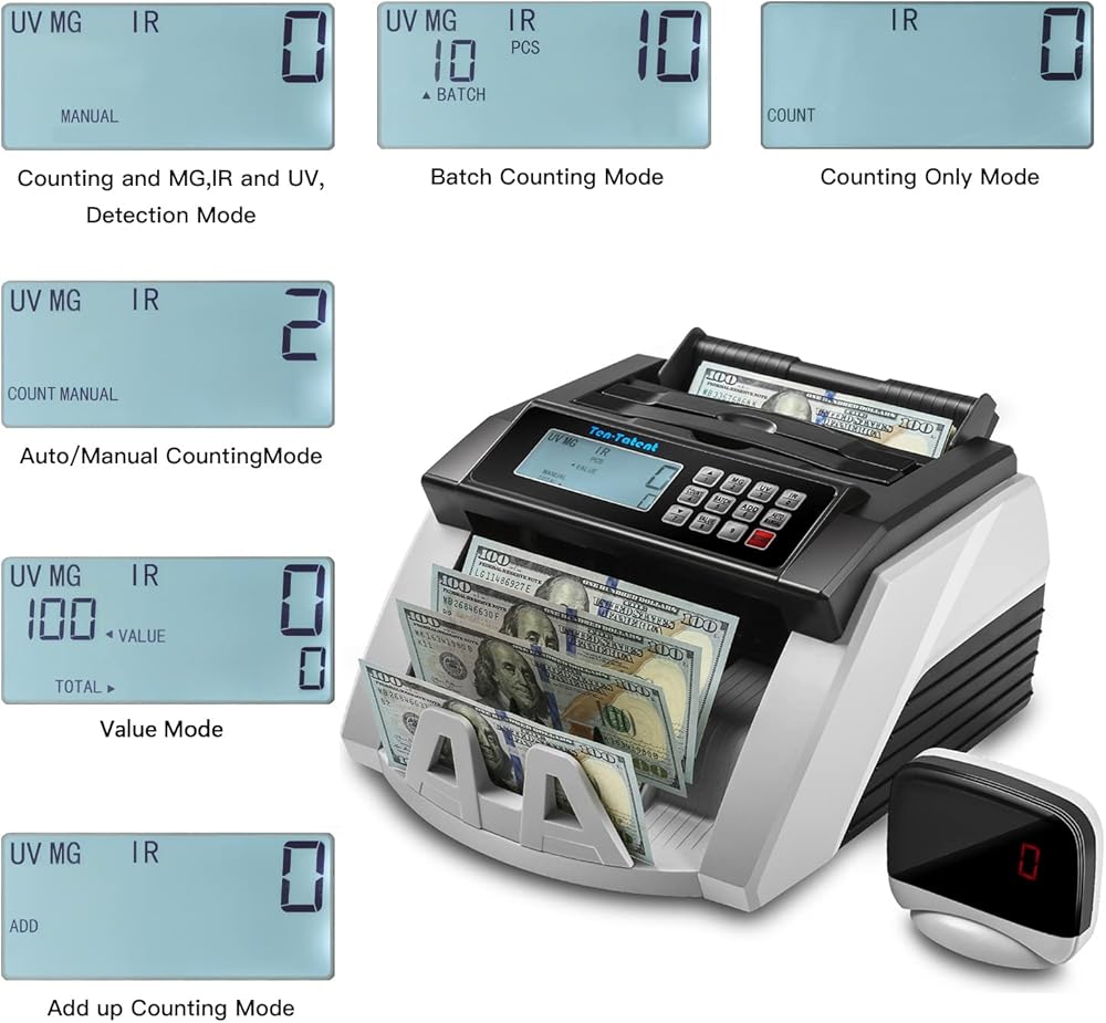 • 💰[سهلة الفهم والاستخدام] لوحة تحكم بديهية مع شاشة LED كبيرة، من الأسهل تغيير أوضاع التشغيل وتتبع عدد الفواتير باستخدام لوحة التحكم المصممة جيدًا من Ten-Tatent.