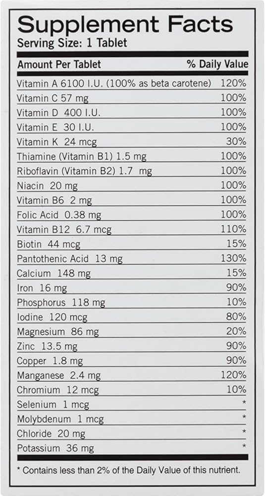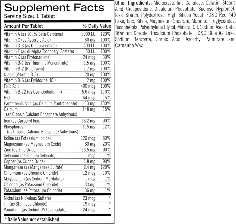 MULTIVITAMIN TABLETS: Balance of 26 essential vitamins and minerals