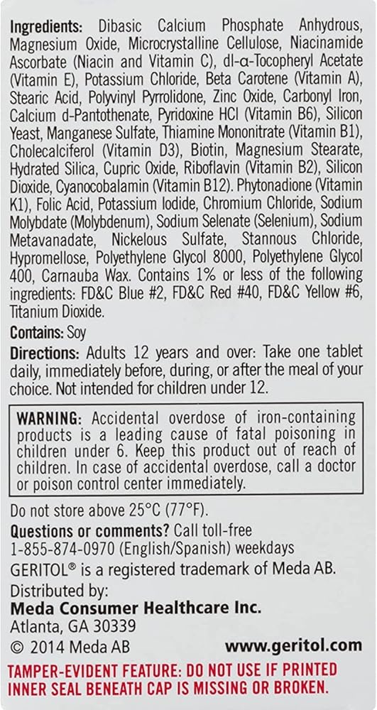Geritol Nutrition Support is a well-balanced multivitamin. It is specially formulated with just the right vitamins such as energy support from essential B vitamins, immune system support from antioxidants, and bone health support from Vitamin D. These statements have not been evaluated by the Food and Drug Administration. This product is not intended to diagnose, treat, cure, or prevent any disease.