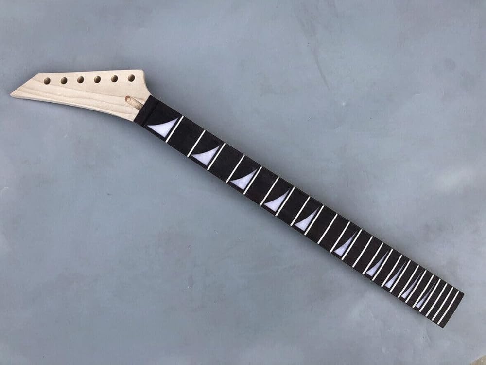 عكس اليد غيتار كهربائي الرقبة 24 الحنق 25.5 بوصة خشب القيقب روزوود قفل الجوز عكس الغيتار الرقبة استبدال أجزاء الغيتار غير المكتملة (24 الحنق 25.5 بوصة)