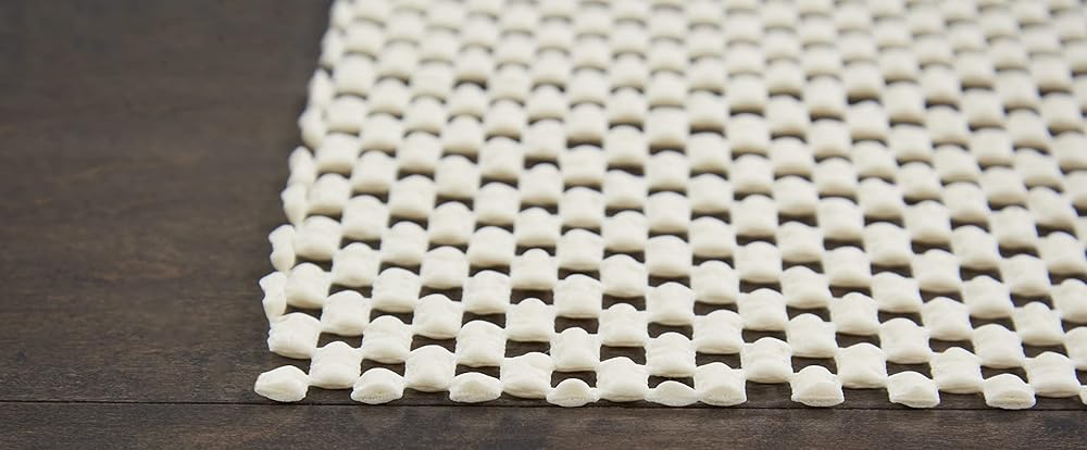 Nourison's GridLoc rug pad gives your area rug affordable protection for hard surfaces like tile and hard wood, keeping your rugs in place without tape or tacky residue. By reducing slippage and providing additional cushioning and support, each rug pad helps your favorite rug last longer and stay fresher while also keeping your favorite rooms safer. The open-weave design of each pad helps hold the rug in place, while also providing improved air circulation to minimize moisture and help vacuums perform better.