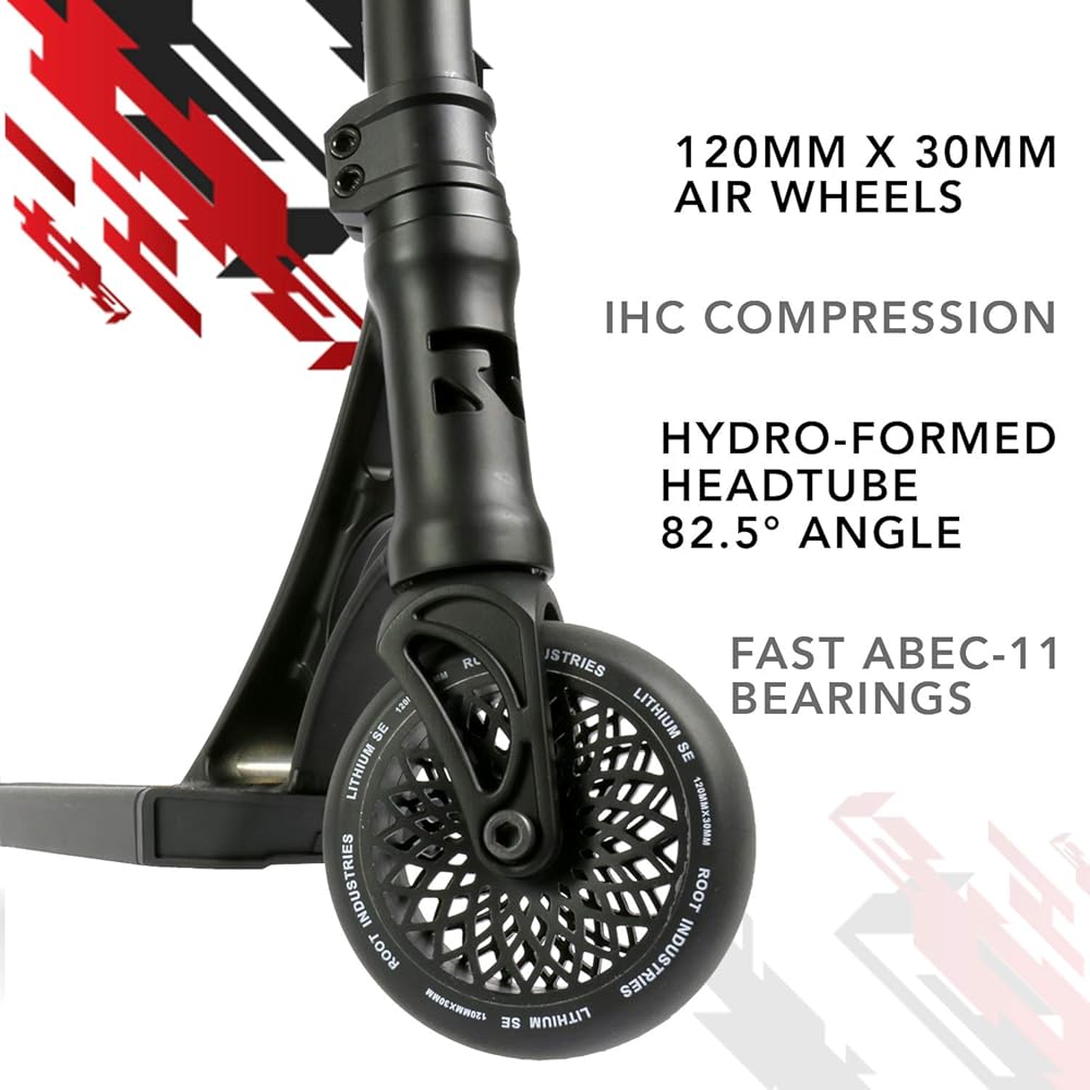 🔧 المواصفات. عجلات ليثيوم عريضة للغاية مقاس 120 مم × 30 مم مع محامل ABEC-11 السريعة الشهيرة، محاور عالية الشد، فرامل نايلون عالية الجودة، شوكات ليثيوم مطروقة، مقود ألومنيوم HMA "HI-Modulus Alloy" - 25 بوصة × 23 بوصة (630 مم × 580 مم) مُشكلة سطح الليثيوم - 4.8 بوصة × 20.6 بوصة (123 مم × 525 مم)؛ زاوية أنبوب الرأس 82.5 درجة؛ سماعة رأس AIR مقعرة فائقة النعومة مقاس 2 مم، مقابض R2 فائقة النعومة، مزيج ضغط IHC من الجاذبية والوظيفة!