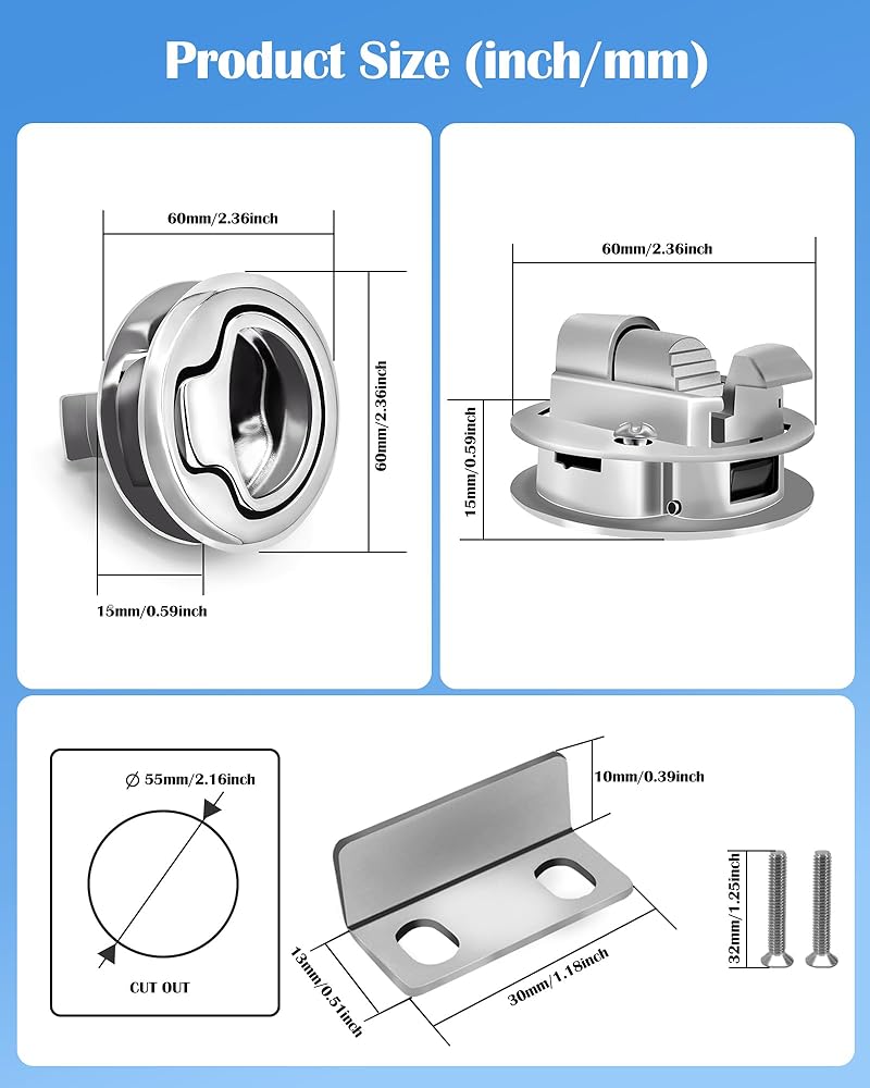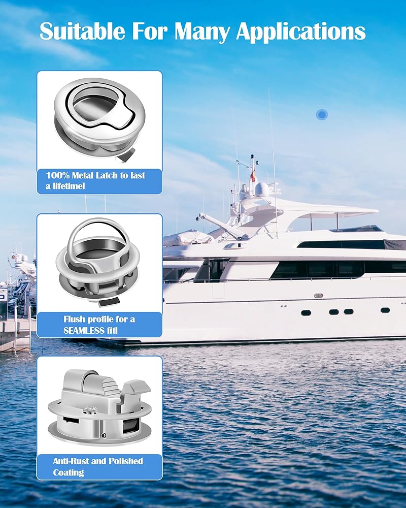 يجعل المظهر الجانبي المتدفق والتركيب السهل هذا المزلاج مثاليًا للفتحات والمرفقات الكهربائية والمقصورات الأخرى على القارب البحري الخاص بك، وأبواب RV.