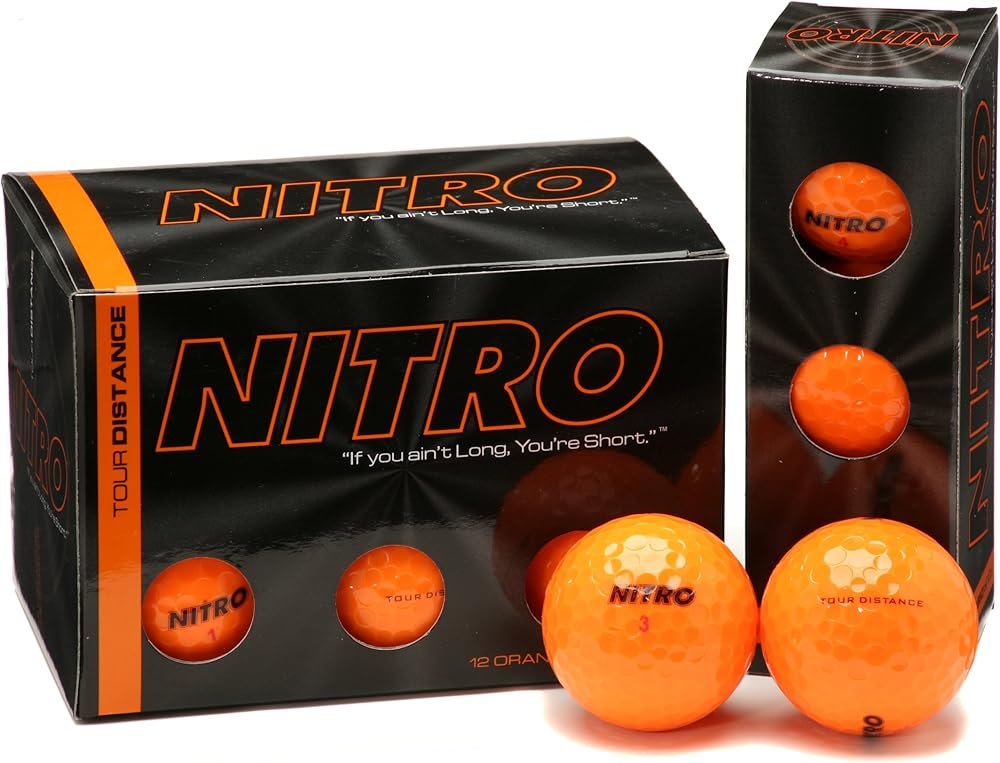 Nitro Tour Distance is in two-piece construction, with Tungsten/titanium enriched solid core technology, and blended surlyn cover, which offers durability with the right feel. The maximum initial velocity increases distance with 432 dimple design for trajectory with stability. This 90 compression ball is great if you are an average-sized man or a very strong woman golfer. It will travel farther down the fairway when struck properly, than an 80 compression ball.