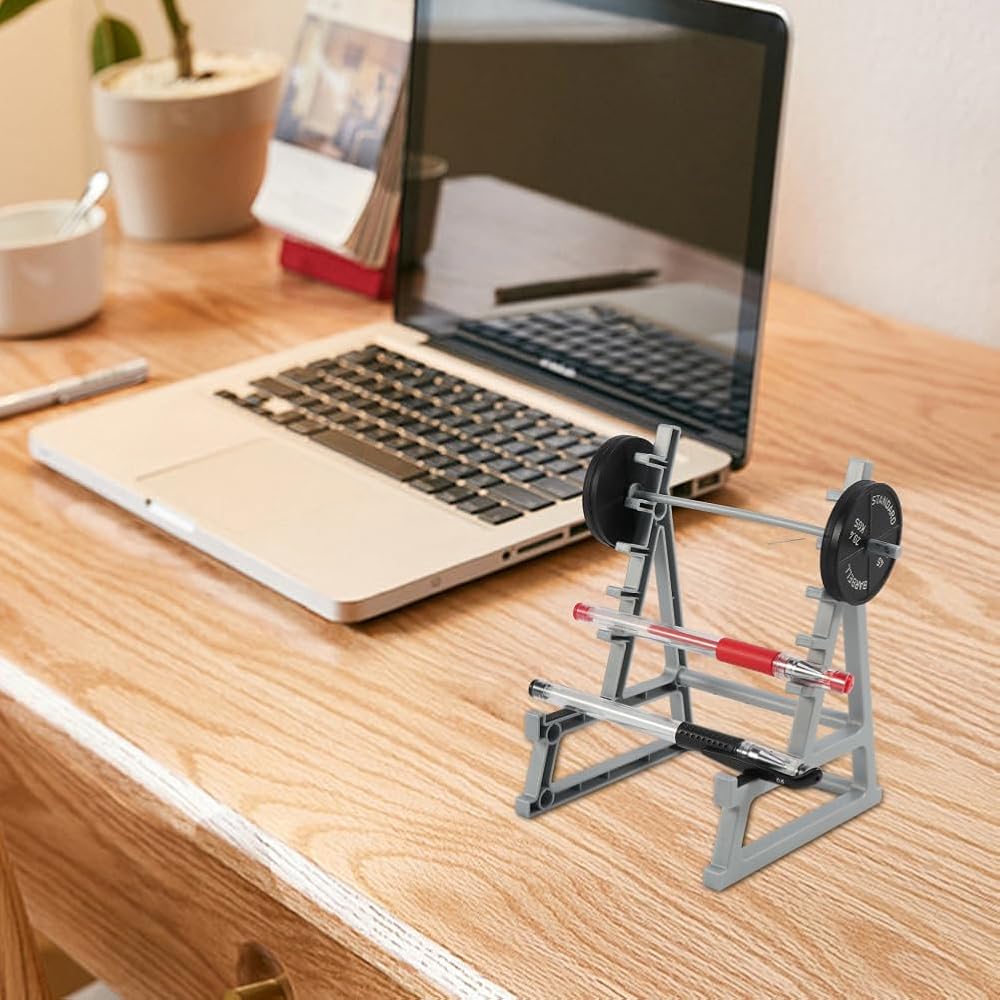 حامل أقلام على شكل رف الأثقال، حامل أقلام على شكل رف القرفصاء لعشاق اللياقة البدنية ومشجعي رفع الأثقال، هدية ديكورات لصالة الألعاب الرياضية، ملحقات مكتب ممتعة (كما هو موضح)