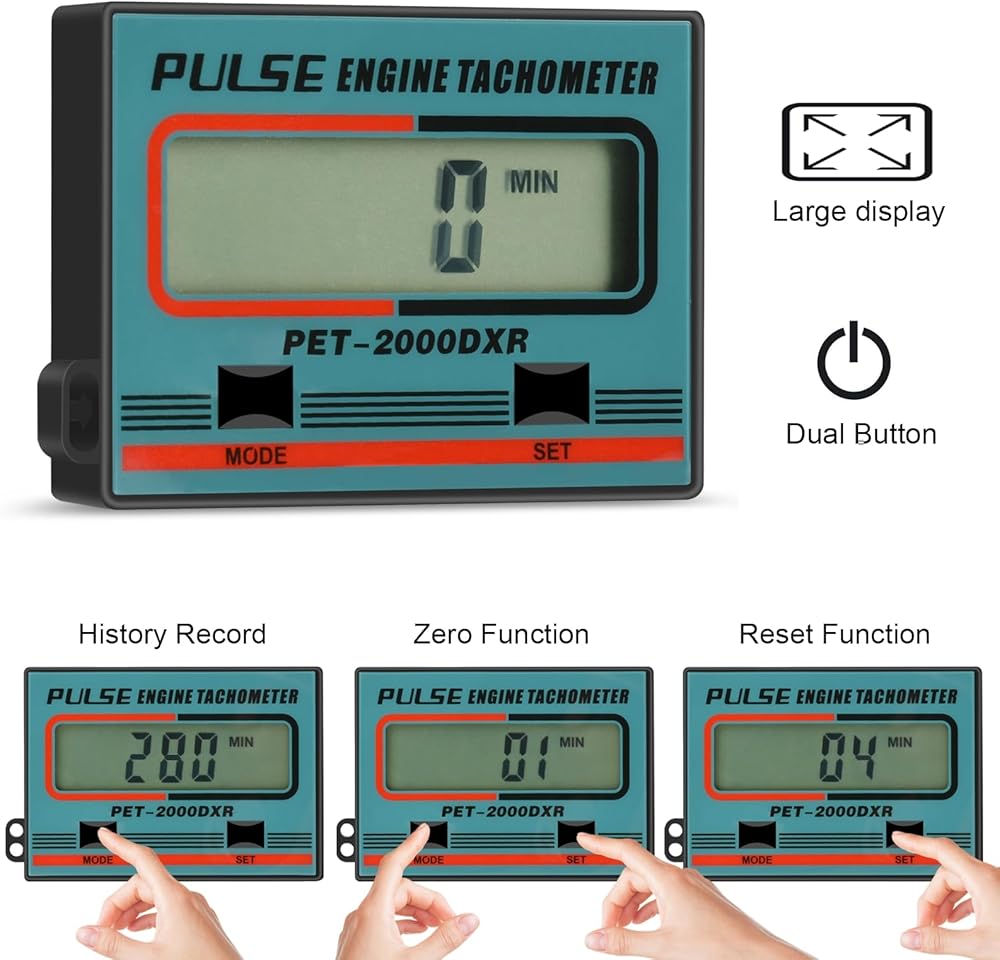 2. [توفير الطاقة وتوفير الطاقة، مريح وعملي] - بعد عدم عمل محرك البنزين، يقوم مقياس سرعة الدوران تلقائيًا بتوفير الطاقة والطاقة وإيقاف تشغيل الشاشة تلقائيًا؛ عندما يعمل محرك البنزين، يبدأ مقياس سرعة الدوران الاختبار تلقائيًا.