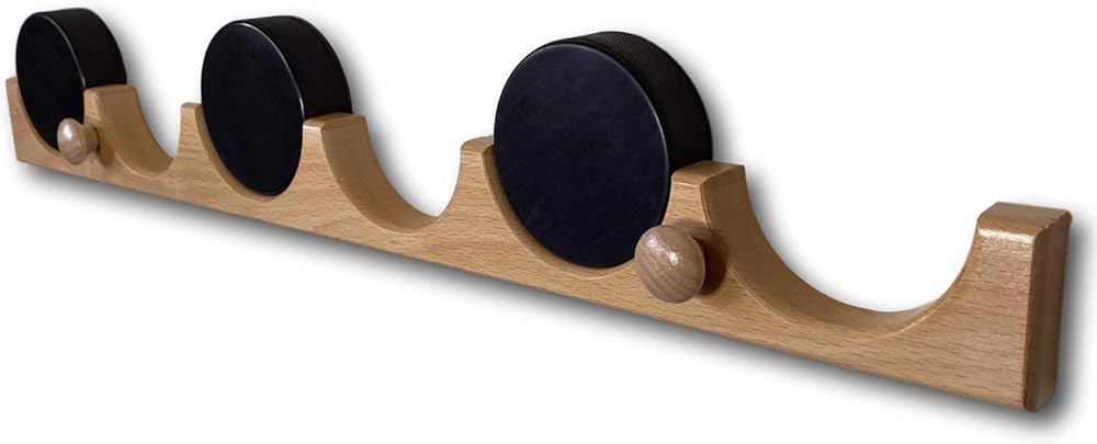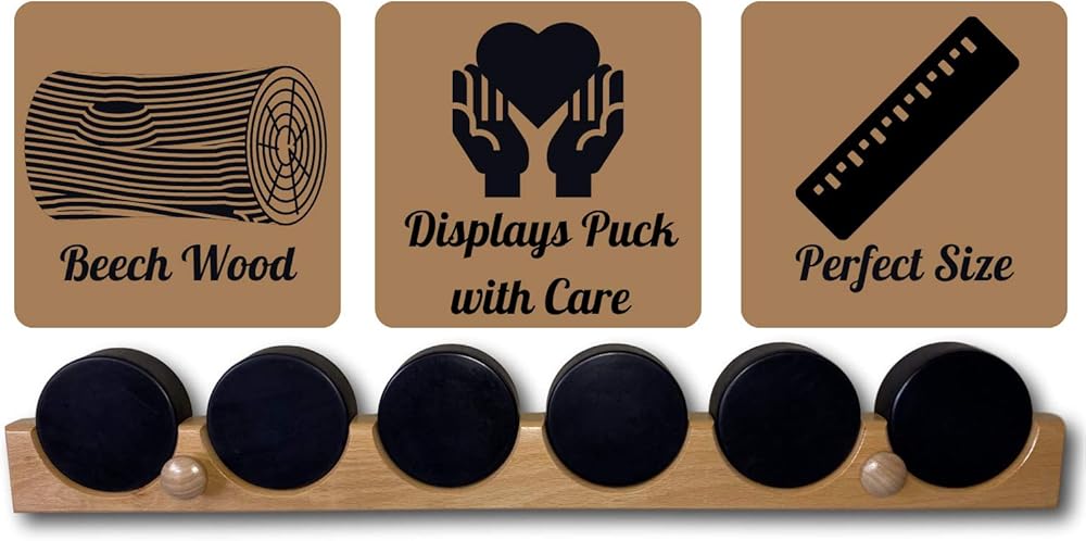جودة رائعة: هذا الرف الجداري على شكل قرص الهوكي مصنوع من خشب الزان لعرض أي قرص هوكي بأمان وأمان.