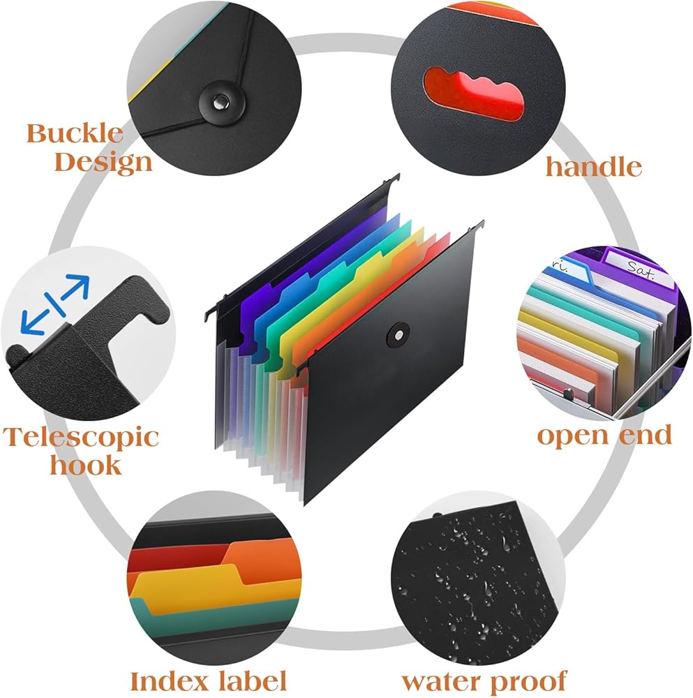تطبيق واسع: يمكن لحقيبة مجلد الملفات المعلقة لدينا تخزين العديد من الملفات والأوراق والتقارير والفواتير وبطاقات العمل والحروف والأوراق والبطاقات والمستندات والكوبونات وما إلى ذلك. مجلدات الملفات المعلقة البلاستيكية مناسبة للاستخدام في المنازل والمكاتب والمدارس، مما يجعل عملك أسهل وأكثر متعة.