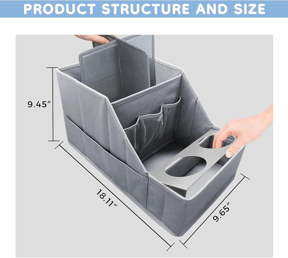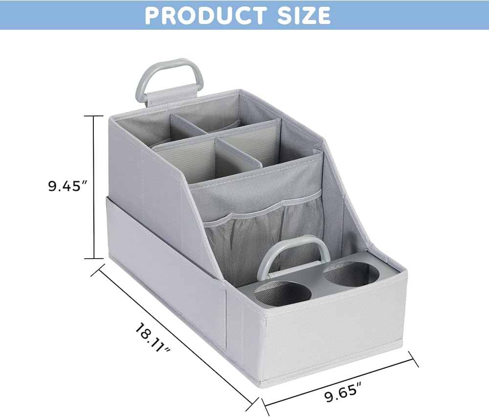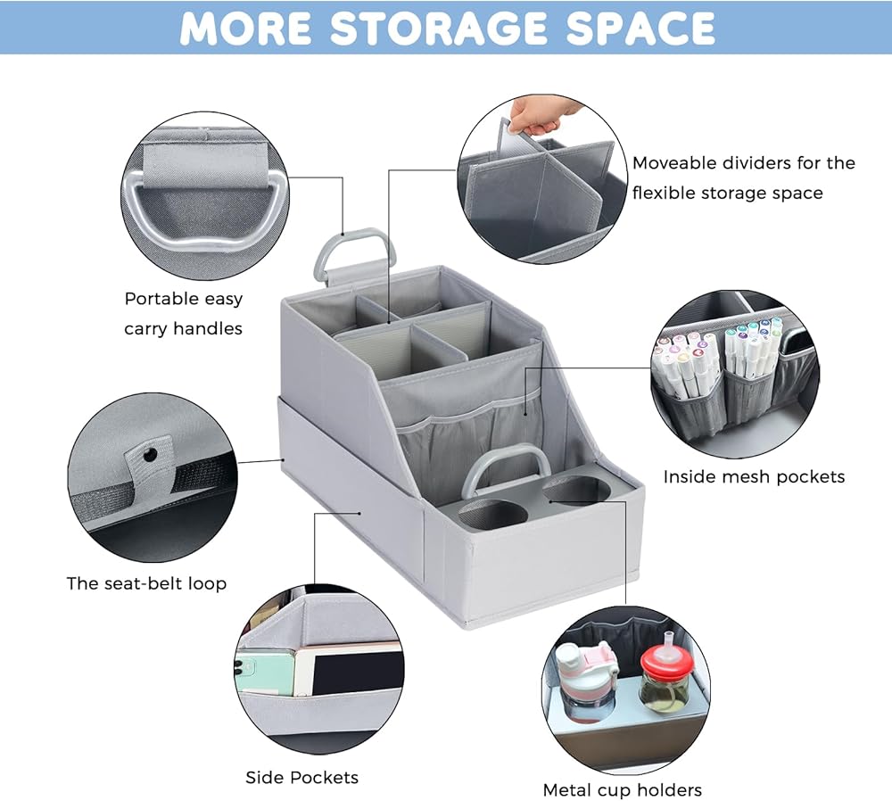 سعة تخزين كبيرة: يبلغ حجم منظم المقعد الخلفي للسيارة 18.11 × 9.65 × 9.45 بوصة وهو أكبر من معظم منظمات مقاعد السيارة المتوفرة في السوق. يحتوي على حاملي أكواب، و4 فواصل قابلة للإزالة، و5 جيوب شبكية، وجيبين جانبيين، وحجرة واحدة. سيارتك أنيقة ومرتبة مع منظم مقعد السيارة هذا لتخزين ضرورياتك، مثل الوجبات الخفيفة والمشروبات والكتب والمزيد.