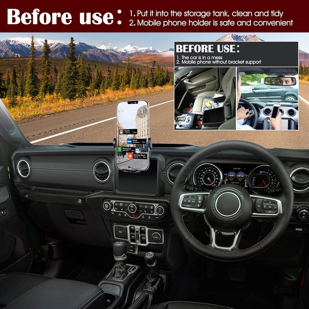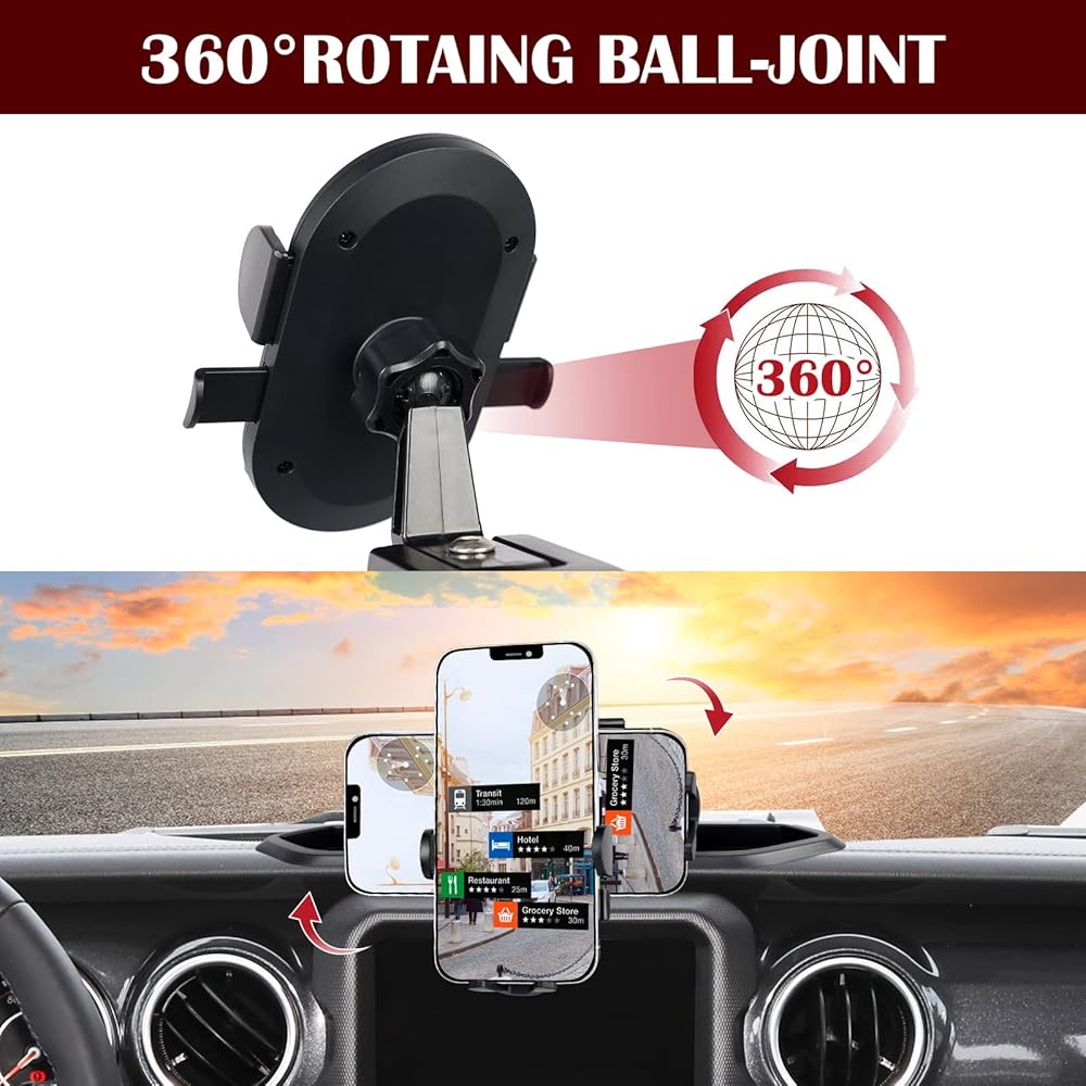 مادة مطورة - حامل الهاتف لسيارة جيب رانجلر مصنوع من مواد عالية الجودة ورأس الحامل يتميز بتصميم مطور، وهو ثابت وشديد التحمل ومضاد لدرجات الحرارة العالية ومضاد للشيخوخة.