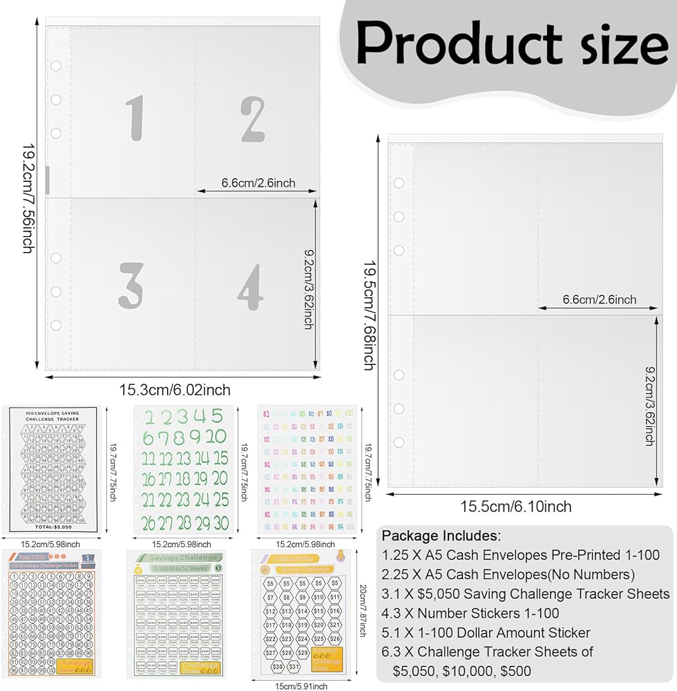 【حجم عالمي】حجم حشوات مجلد a5: 7.6 × 6.1 بوصة، حجم بطاقة التحدي: 7.6 × 5.9 بوصة، مناسب لجميع المجلدات القياسية ذات 6 حلقات A5. مقاس كل جيب: 3.5*2.5 بوصة، ليس فقط يمكنه تخزين النقود، ولكن أيضًا يمكن استخدامه لتنظيم بطاقاتك أو صورك.