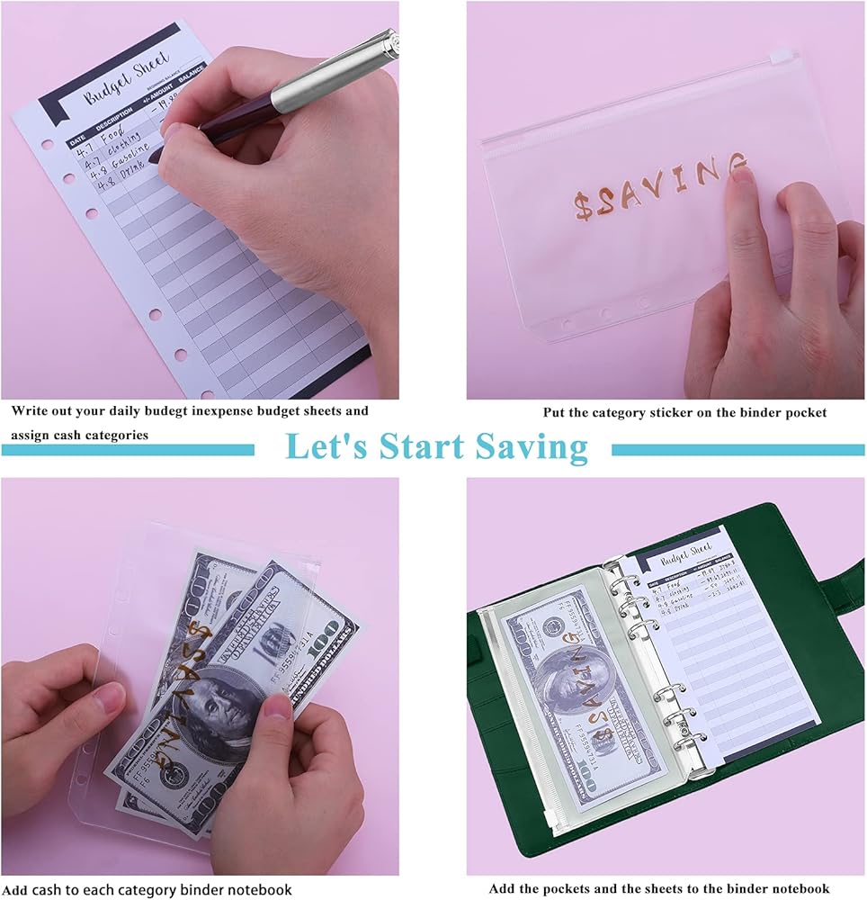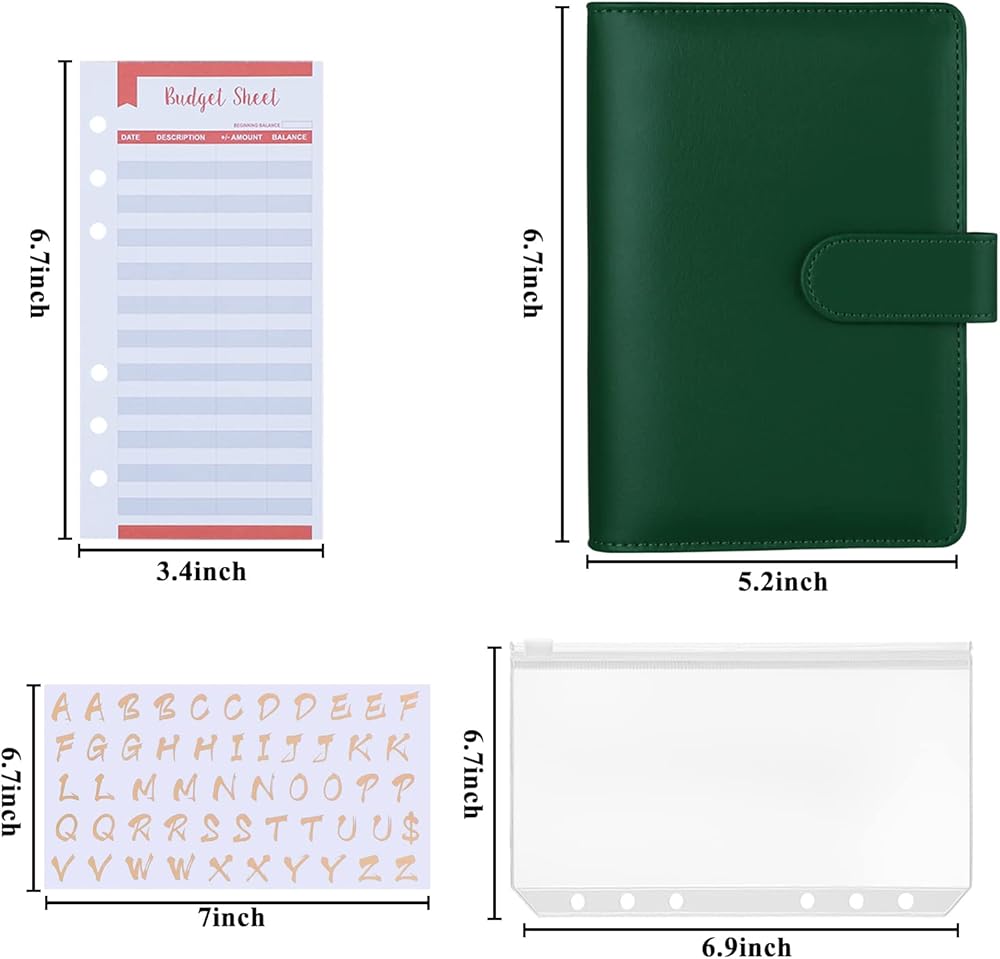 تشمل العبوة: قطعة واحدة من غطاء غلاف A6 قابل لإعادة الملء، 8 قطع من أظرف النقود بسحاب A6، 12 قطعة من أوراق الميزانية A6 بـ 6 ألوان، 6 أوراق 26 فئة من ملصقات الحروف الإنجليزية؛ خيار فعال من حيث التكلفة لتلبية احتياجاتك اليومية