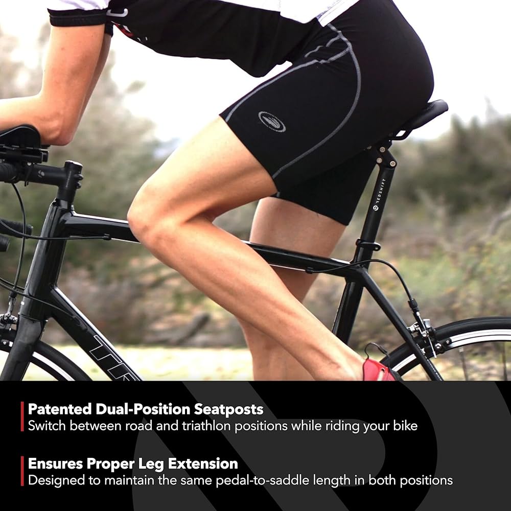 SWITCH FROM ROAD TO AERO POSITION – The Dual-Position bike seatpost allows you to switch between road and aero positions on the fly during your ride. Transform the road bike you already own into a triathlon riding position for proper fit with aero bars.