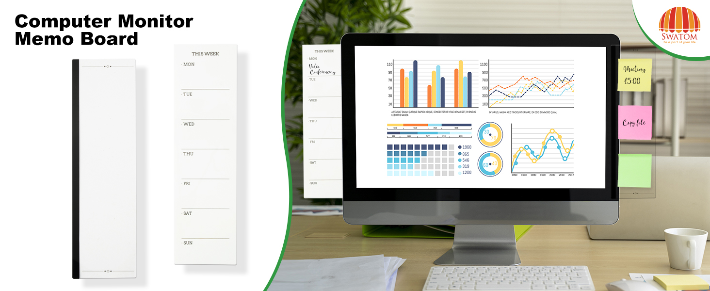 أفضل شريك لجهاز الكمبيوتر الخاص بك: حجم لوحة مذكرة شاشة SWATOM هو 11*3.1 بوصة، مما يضمن إمكانية تطبيقها على معظم أجهزة الكمبيوتر المكتبية. يمكنك لصق المذكرات على لوحة الرسائل أو تسجيل ترتيباتك، وتجنب نسيان أي شيء مهم وسيبقي سطح المكتب الخاص بك نظيفًا.