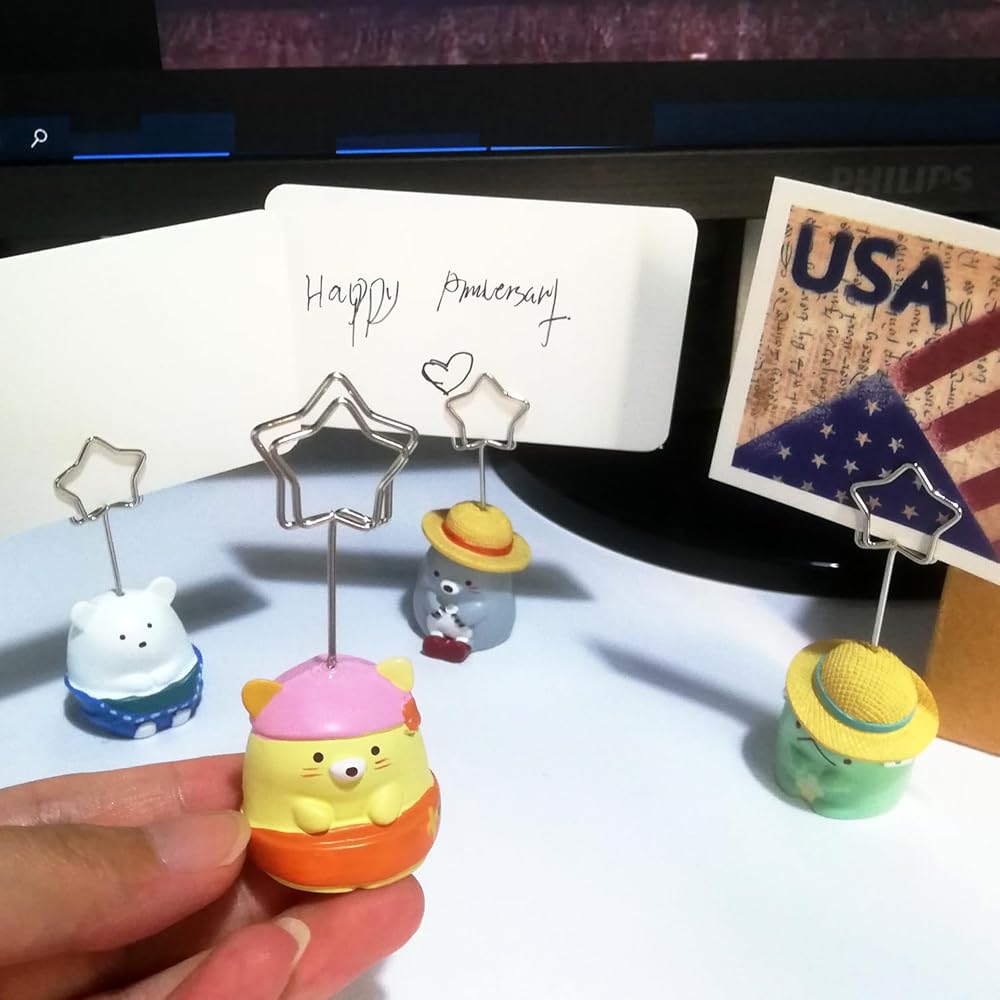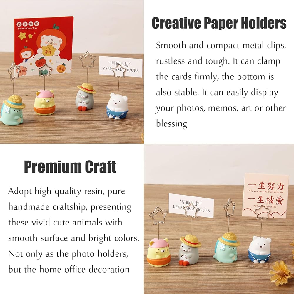 【حوامل مذكرات كرتونية لطيفة】مجهزة بـ 4 قطع من حوامل صور البطاقات مع حيوانات مختلفة: الخلد، هيتونج، القط، الدب، جميل وجميل
