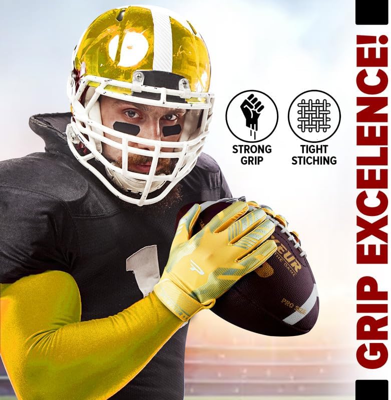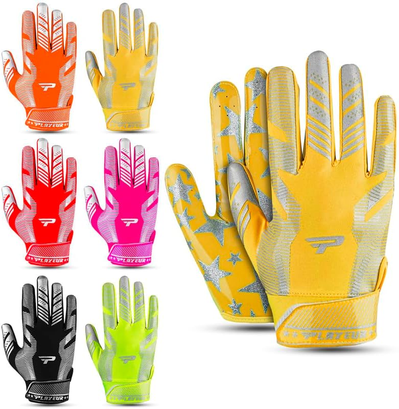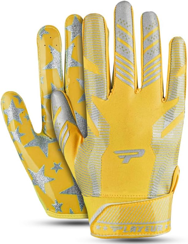 🏈 قبضة سماوية للاعبين النجوم - تتميز قفازات PLAYEUR STAR Signature Series بتصميم حاصل على براءة اختراع مع قبضة ممتازة من أجل الإمساك الدقيق. مثالية لعشاق قفازات كرة القدم للشباب وقفازات كرة القدم للرياضيين البالغين الذين يهدفون إلى التألق في كل لعبة.