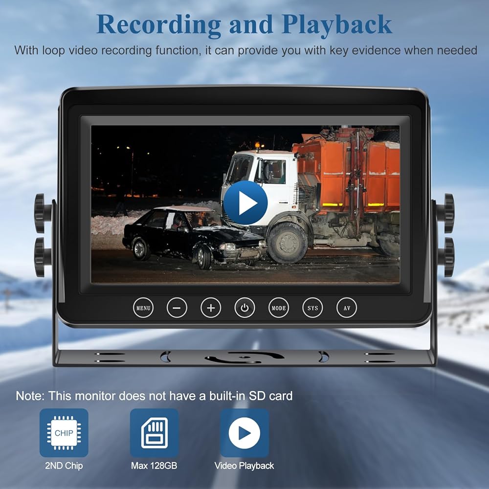 ►[التسجيل والتشغيل] يحتوي نظام الكاميرا العكسية للشاحنة على وظيفة تسجيل DVR. يمكنه أيضًا توصيل مصادر الطاقة التي تتراوح من 12 فولت إلى 36 فولت. بالإضافة إلى ذلك، يدعم هذا المنتج تسجيل 4 كاميرات في نفس الوقت، مما يسمح لك بتسجيل كل رحلة ممتعة.