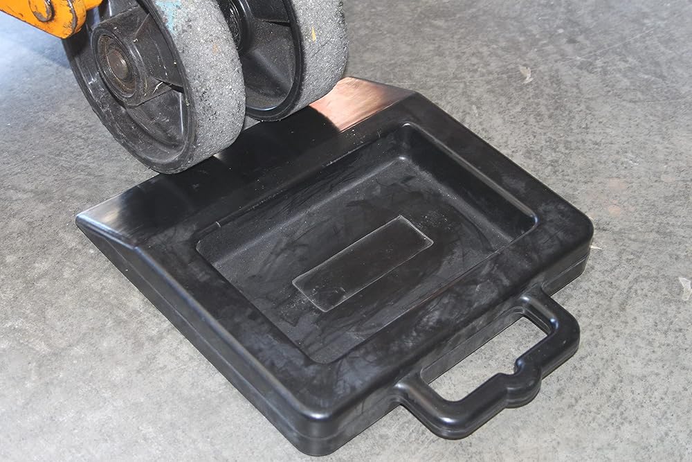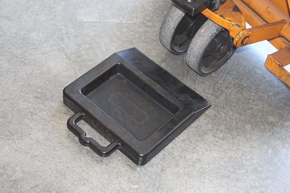Do you transport your pallet jack in the back of your truck, prevent the jack from shifting, rolling or damaging the sides or gate. Easier than lashing strapping it down, this pallet jack rubber wheel stop anchors the pallet jack in place in a moving vehicle to reduce product, trailer, and pallet damage that causes freight claims from runaway pallet jacks. Heavy duty rubber with a base is what is needed for traction in a trailer or on sloped surfaces. Fits most pallet trucks, pallet jacks, skid jacks, and pump trucks that lift and transport pallets or skids of goods. Other brands lack the rubber base, and the jack could roll away. This wheel chock weighs in at 5 pounds. Almost twice the light duty competition.