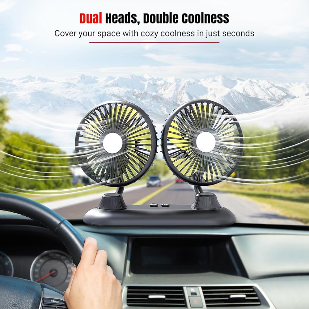 【مروحة سيارة مزدوجة الرأس قابلة للدوران 360 درجة】نقدم لك مروحة السيارة الكهربائية الخاصة بنا المجهزة برأسين دوارين لأداء لا مثيل له. بفضل قدرتها على الدوران 360 درجة، تعمل هذه المروحة على تبديد الحرارة بشكل فعال، وتحسين دوران الهواء، والحفاظ على الهواء داخل سيارتك منتعشًا وباردًا. قل وداعًا للدخان غير المرغوب فيه والروائح الكريهة والغبار حيث تساعد هذه المروحة في التخلص منها بسرعة وكفاءة من كل ركن من أركان سيارتك. استمتع بالانتعاش والراحة المطلقة على الطريق مع مروحة السيارة المتطورة ذات الرأس المزدوج.