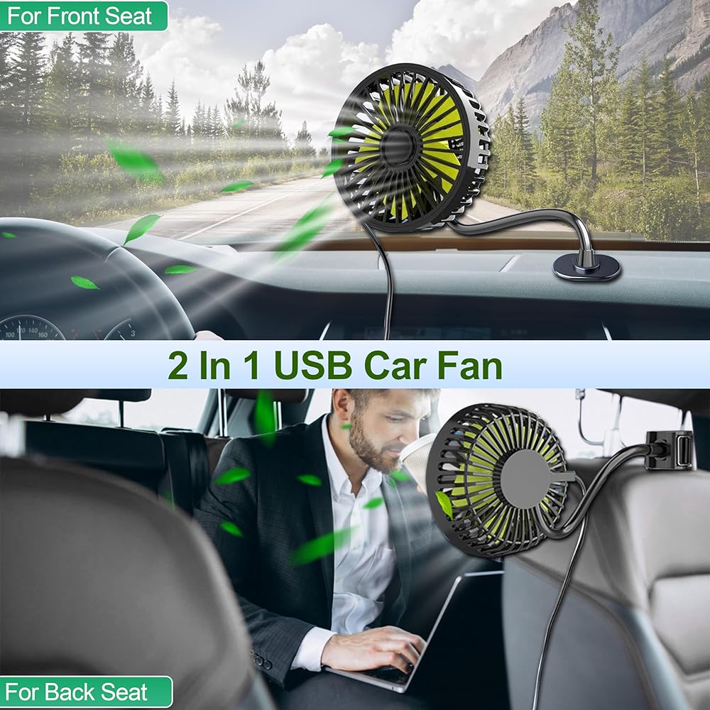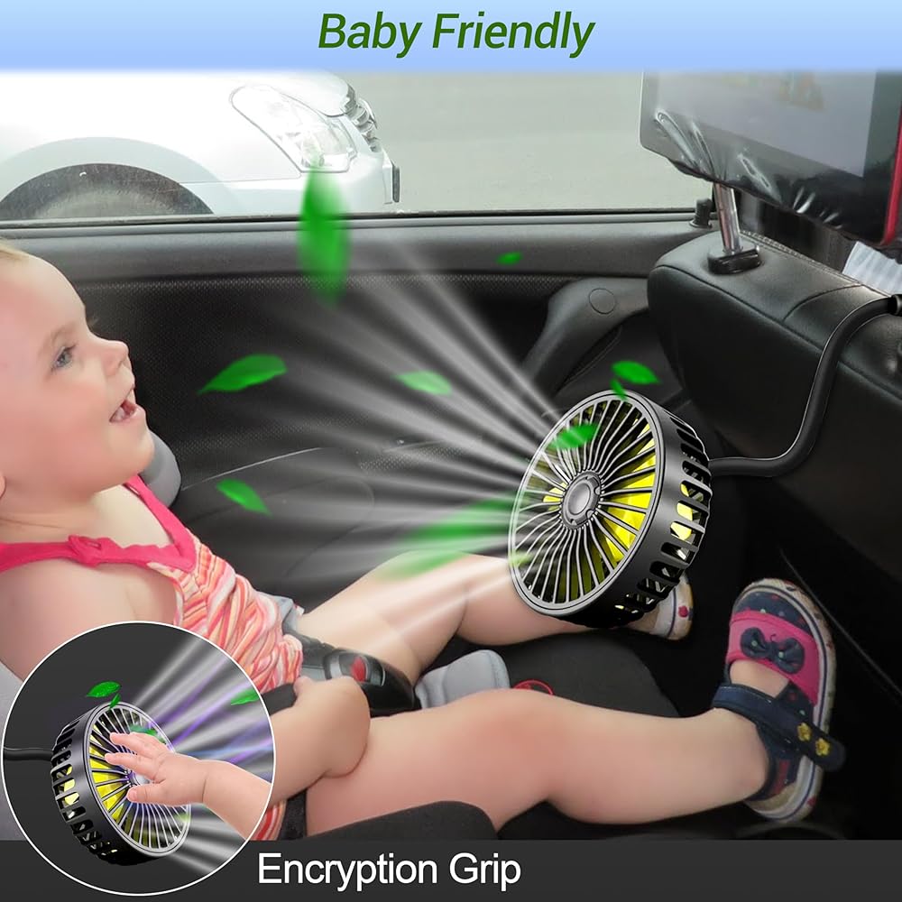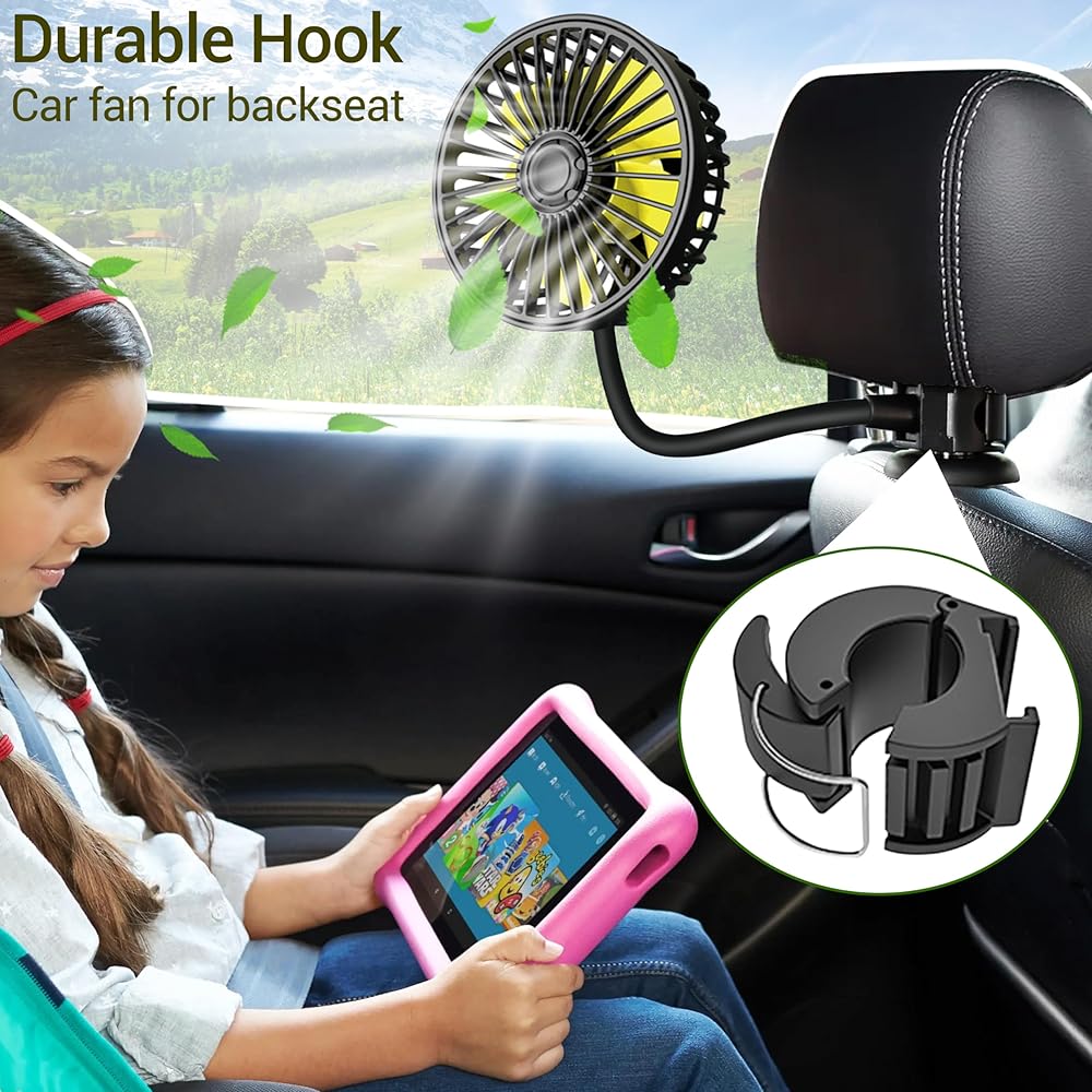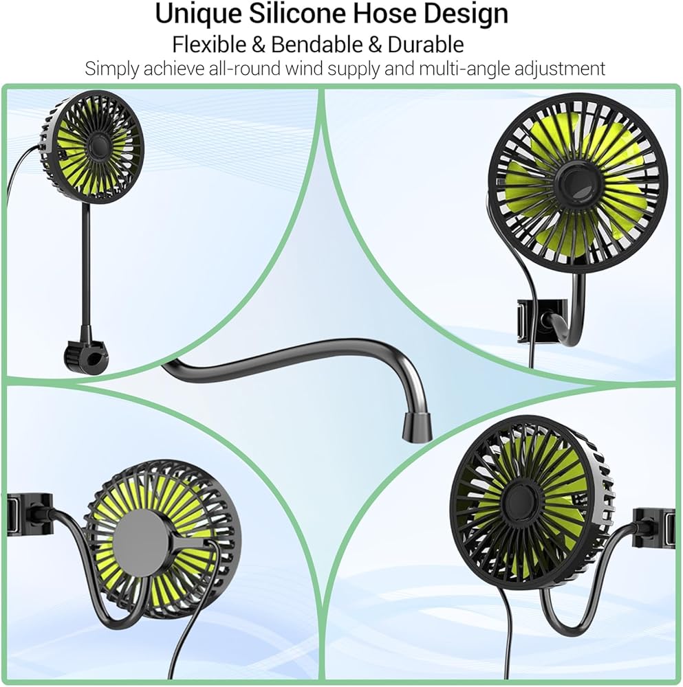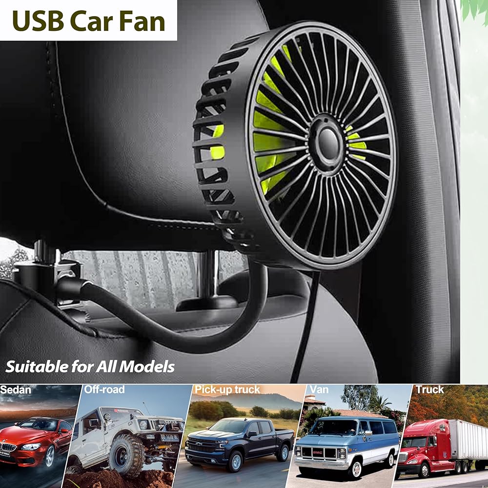 【مروحة سيارة مرنة وقابلة للتعديل】تتميز بخرطوم سيليكون مطور قابل للانحناء وقابل للتعديل، وقد تم تصميم مروحة مقعد السيارة USB الخاصة بنا لتوفير البرودة للركاب والحيوانات الأليفة في كل ركن من أركان المقعد الخلفي. مع دوران 360 درجة، يمكنك بسهولة ضبط المروحة على الاتجاه المطلوب. ما عليك سوى تخصيص تدفق الهواء ليناسب احتياجاتك والاستمتاع بالراحة في كل ركن من أركان السيارة.
