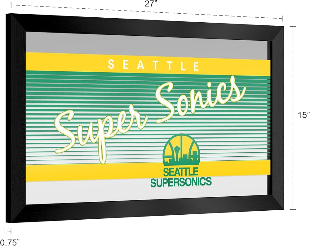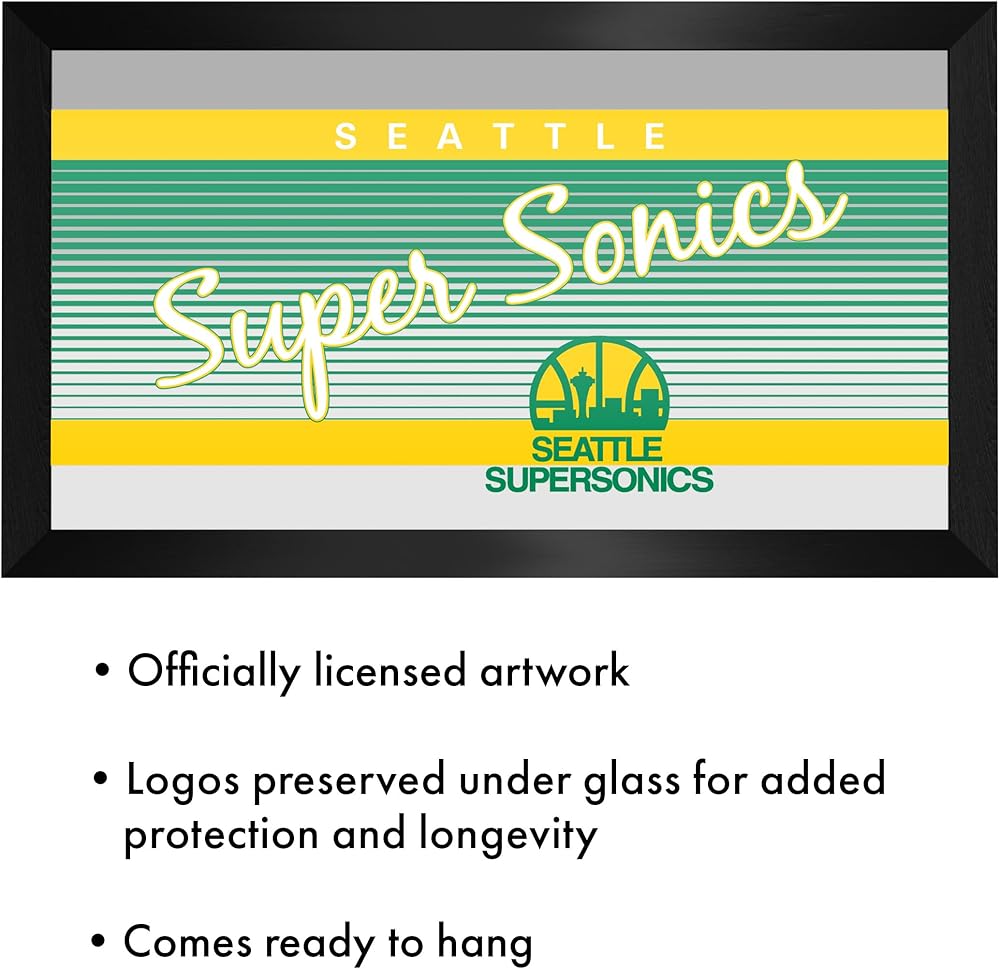 • OFFICIALLY LICENSED MIRROR - This framed mirror features the officially licensed Seattle SuperSonics logo. The authentic artwork is preserved under mirrored glass for a professional look that will last for years to come.