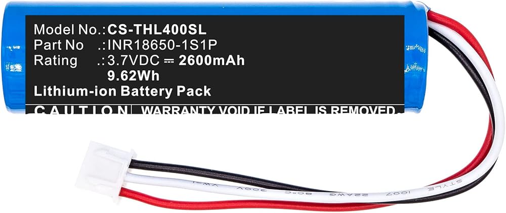 CS-THL400SL Category Personal Care Capacity 2600mAh Type Li-ion Voltage 3.7V Rate 9.62Wh Remark -- Color Blue Dimension 68.00 x 18.90 x 18.90mm EAN Code 4894128162797 Net Weight 48.0g / 1.69oz Gross Weight 73g / 2.57oz
