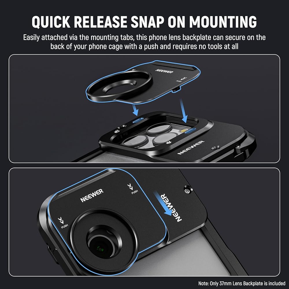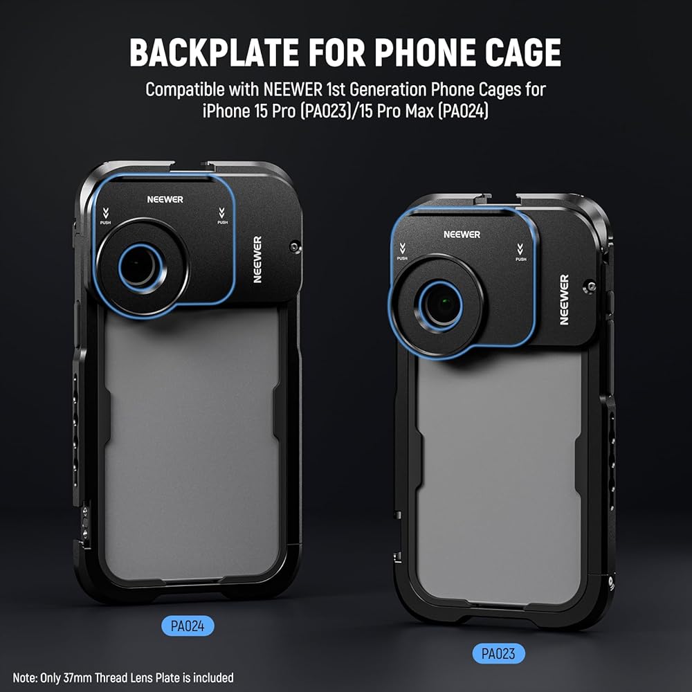 NEEWER 37 مم لوحة خلفية لعدسة iPhone 15 Pro Cage (PA023) iPhone 15 Pro Max Phone Cage (PA024)، محول تركيب عدسة الهاتف سريع الفك متوافق مع مرشح عدسة BeastGrip، PA035