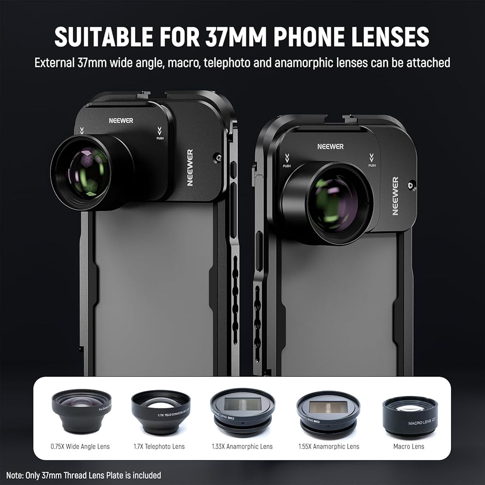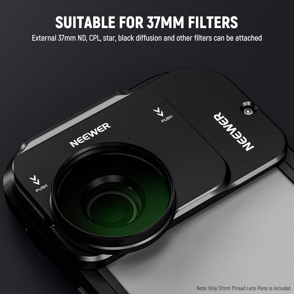 • 【لعدسات ومرشحات الهاتف مقاس 37 مم، يمكن للوحة الخلفية للعدسة الملولبة مقاس 37 مم لأقفاص iPhone تركيب عدسات هاتف مقاس 37 مم ومرشحات مقاس 37 مم. متوافقة مع عدسات هاتف BeastGrip، بما في ذلك عدسة زاوية واسعة 0.75X، وعدسة Anamorphic 1.33X MK2، وعدسة Anamorphic 1.55X MK2، وعدسة Telephoto 1.7X، ومحول DOF MK2، وNEEWER 37 مم ND، وCPL، ومرشحات نشر سوداء، فهي تسمح لك بالتقاط الصور لقطات إبداعية باستخدام الكاميرا الرئيسية بدقة 48 ميجابكسل