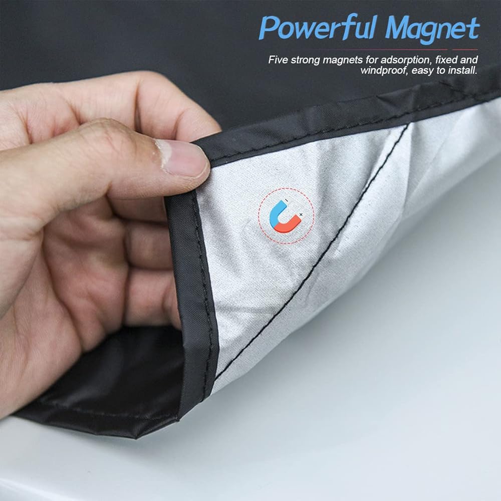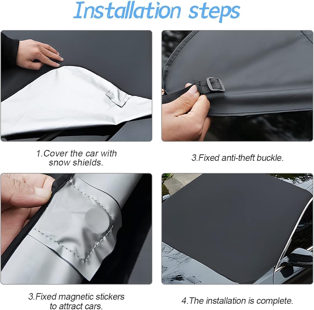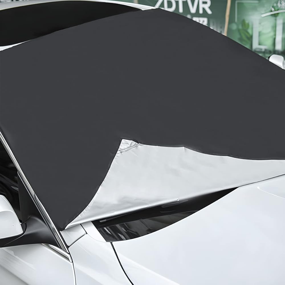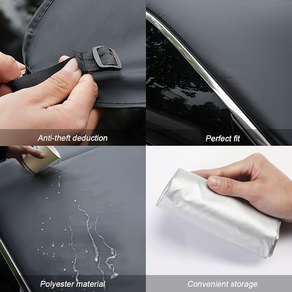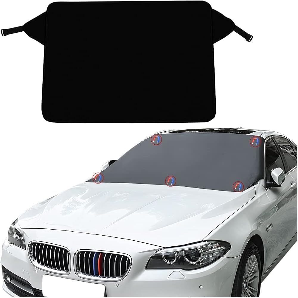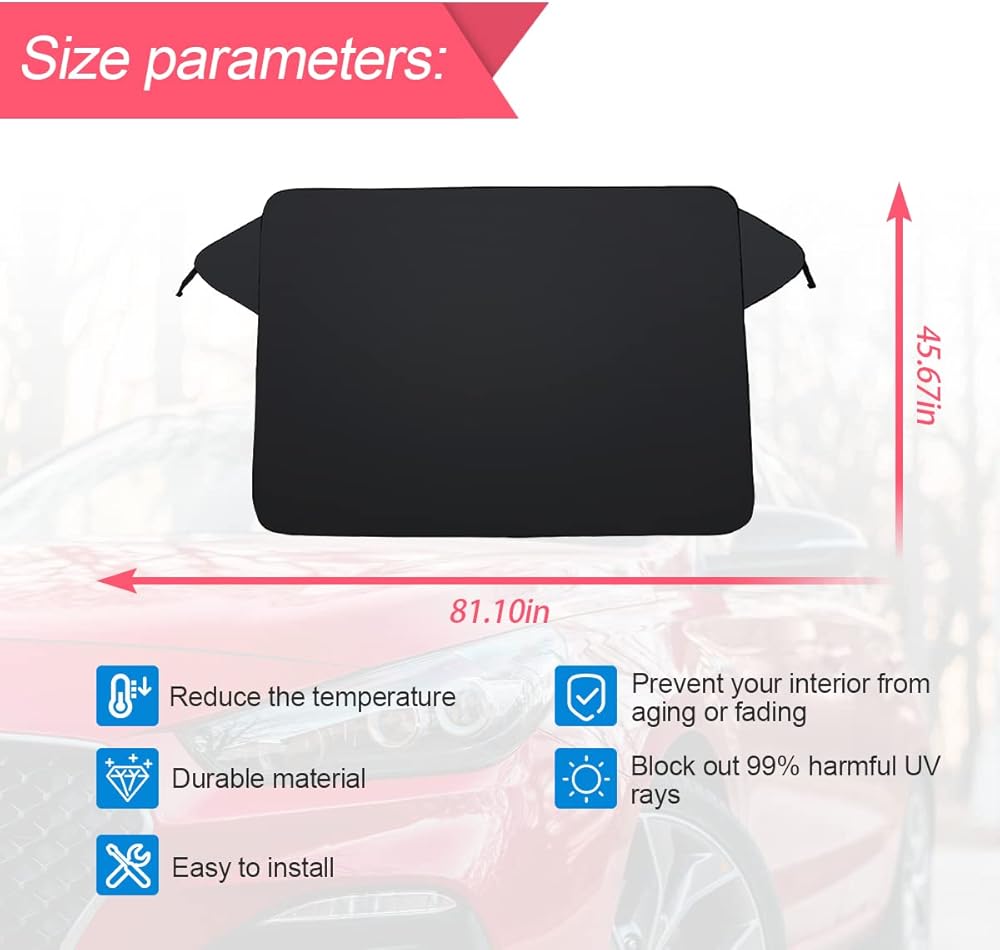 غطاء الزجاج الأمامي للسيارة للثلج والثلج، 81.1 بوصة × 45.6 بوصة، غطاء شتوي مقاوم للماء من البوليستر للزجاج الأمامي للسيارات، سميك مقاوم للرياح، ظل الشمس، حماية من الصقيع، ضوء الشمس، عالمي لسيارات الدفع الرباعي والشاحنات والسيدان والشاحنة